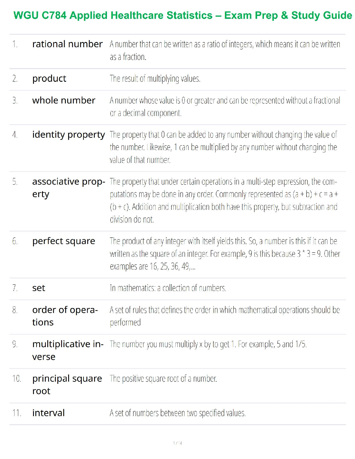 Business Management > STUDY GUIDE > WGU C784 Applied Healthcare Statistics – Exam Prep & Study Guide (All)