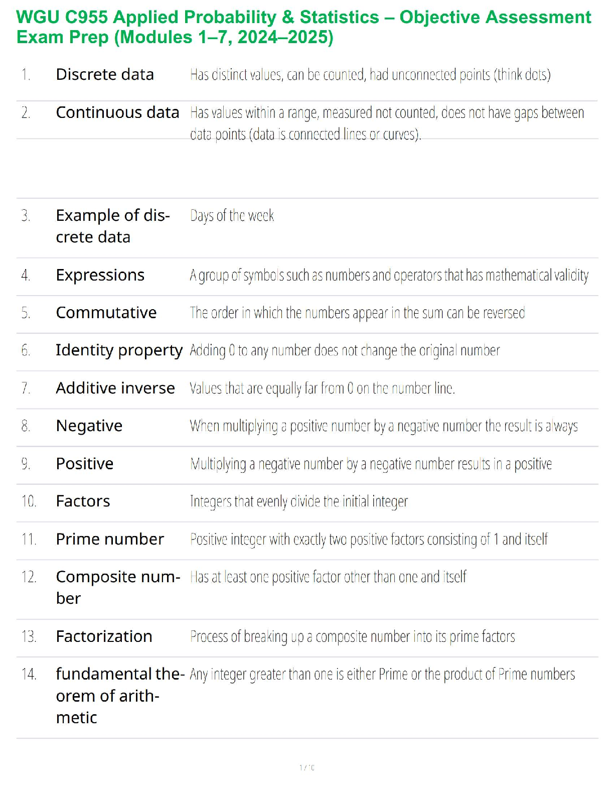 Business Management > QUESTIONS & ANSWERS > WGU C955 Applied Probability & Statistics – Objective Assessment Exam Prep (Modules 1–7, 2024–2025) (All)