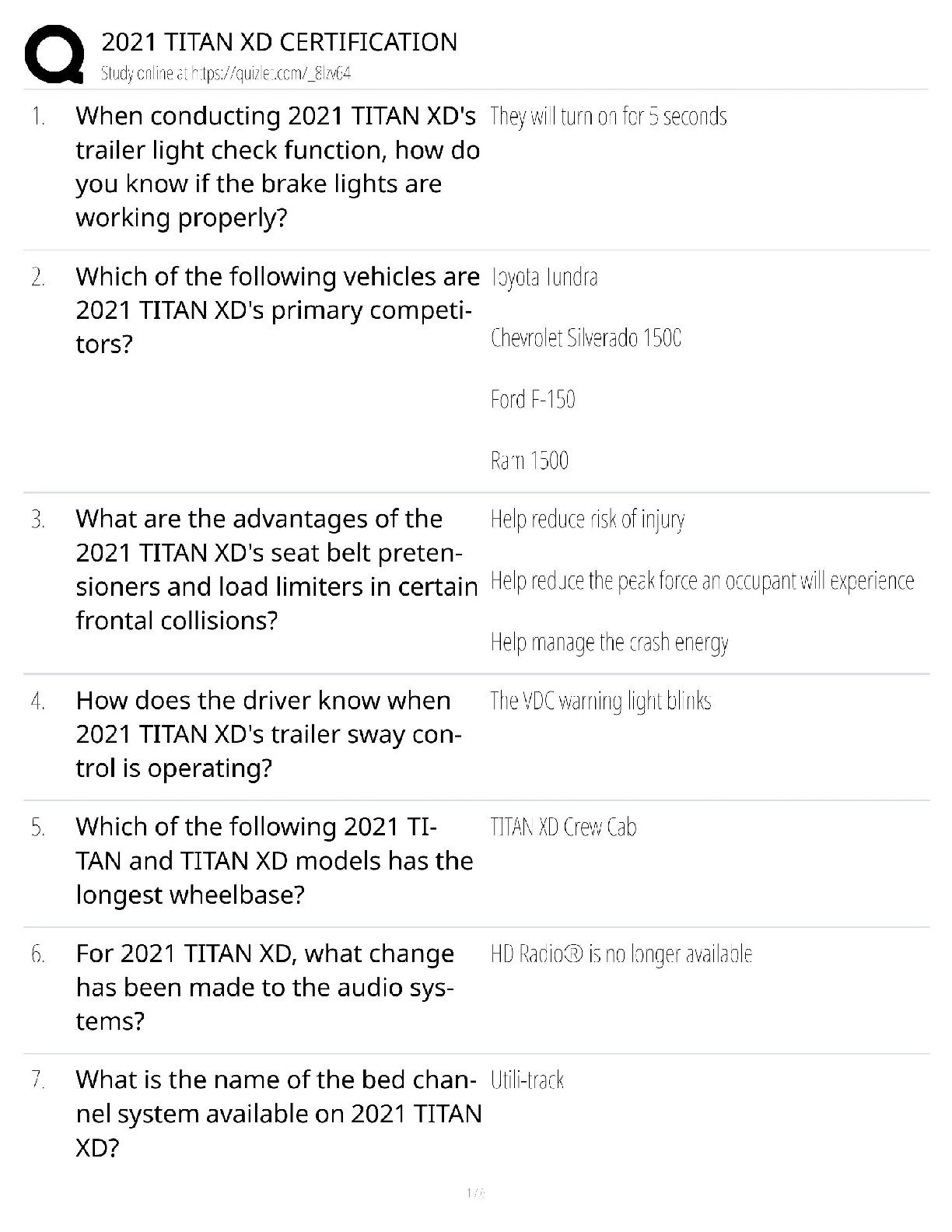 Business Management > QUESTIONS & ANSWERS > 2021 Titan XD Certification / Nissan Technician Guide / 2025 Update / Score 100% (All)