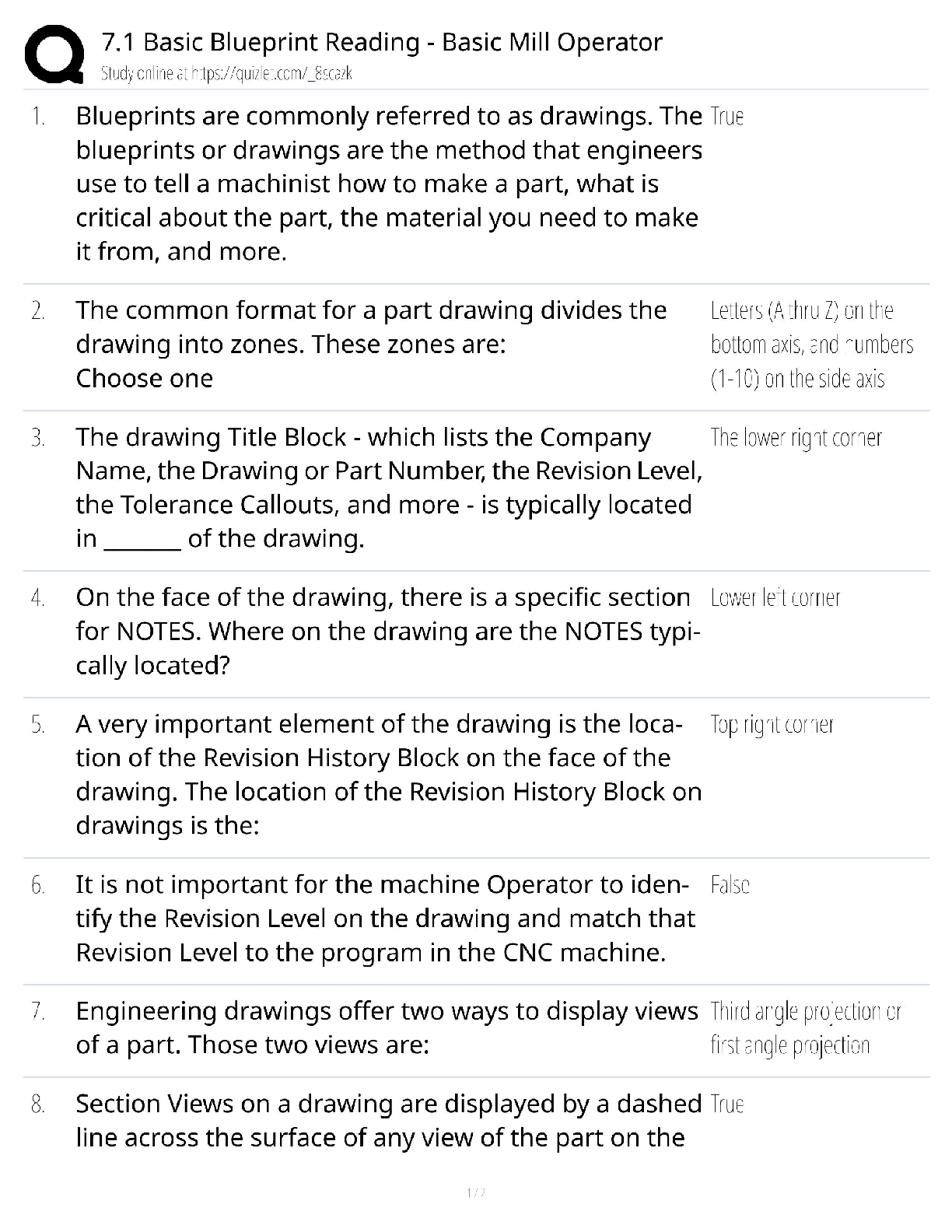 Business Management > QUESTIONS & ANSWERS > 7.1 Basic Blueprint Reading / Basic Mill Operator Guide / 2025 Update / Score 100% (All)