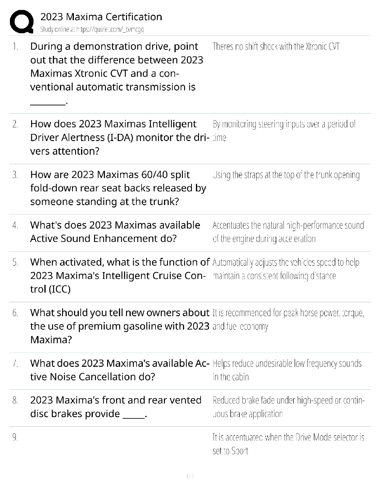 Business Management > QUESTIONS & ANSWERS > 2023 Nissan Maxima Master Technician Certification / Score 100% / 2023-2025 Complete Exam Prep (All)