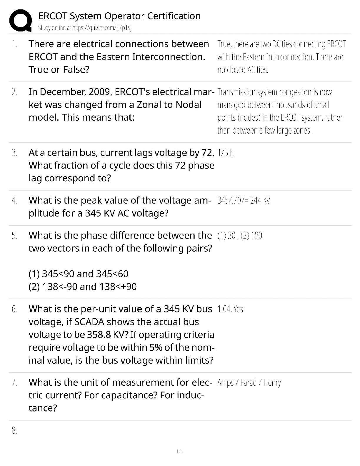 Business Management > QUESTIONS & ANSWERS > ERCOT System Operator Certification / 2025 NERC Prep / Score 100% / Study Guide & Test Bank (All)