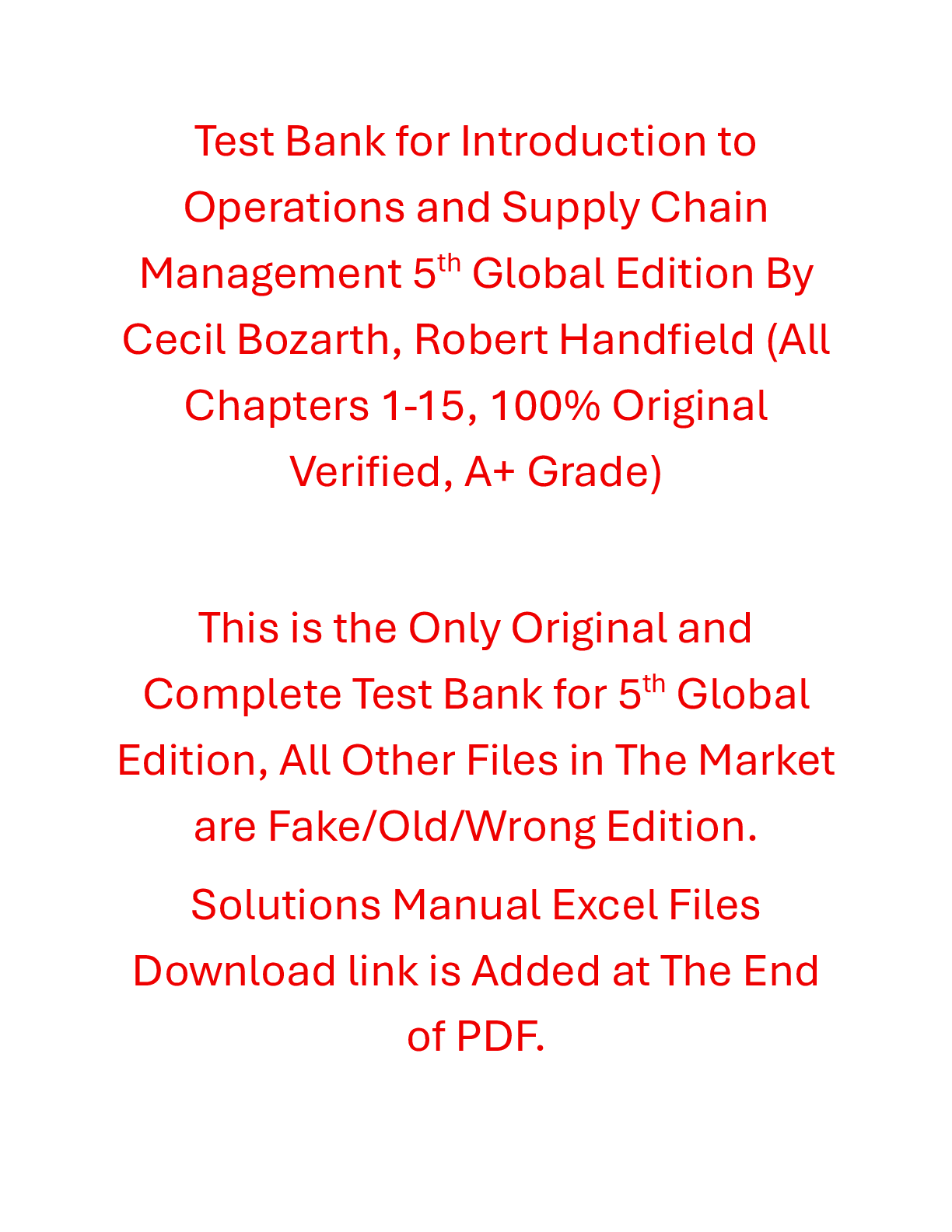 Business Management > TEST BANKS > Test Bank Introduction to Operations and Supply Chain Management 5th Global Edition By Cecil Bozarth, Robert Handfield (All)