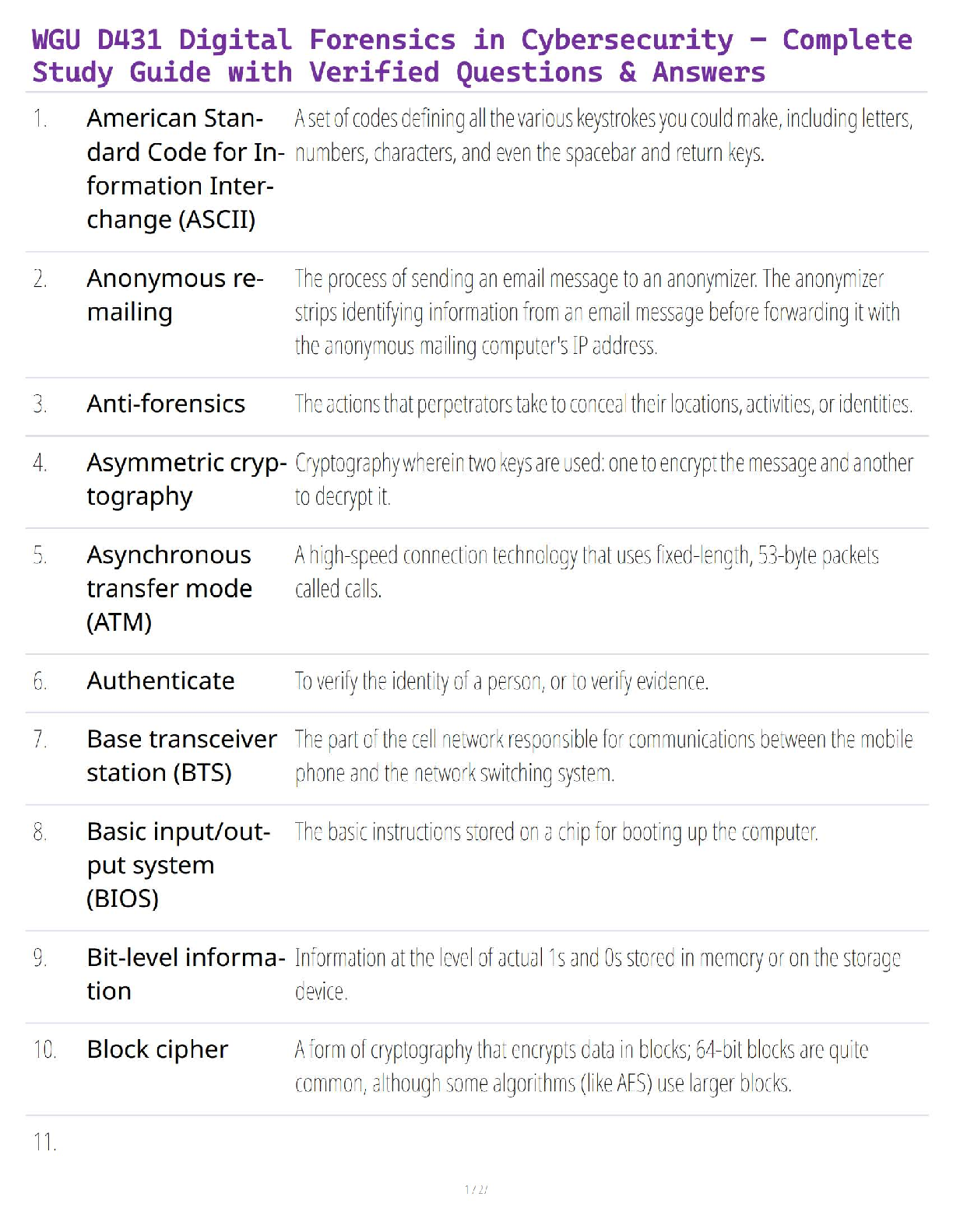 Forensic Science > QUESTIONS and ANSWERS > WGU D431 Digital Forensics in Cybersecurity – Complete Study Guide with Verified Questions & Answers (All)