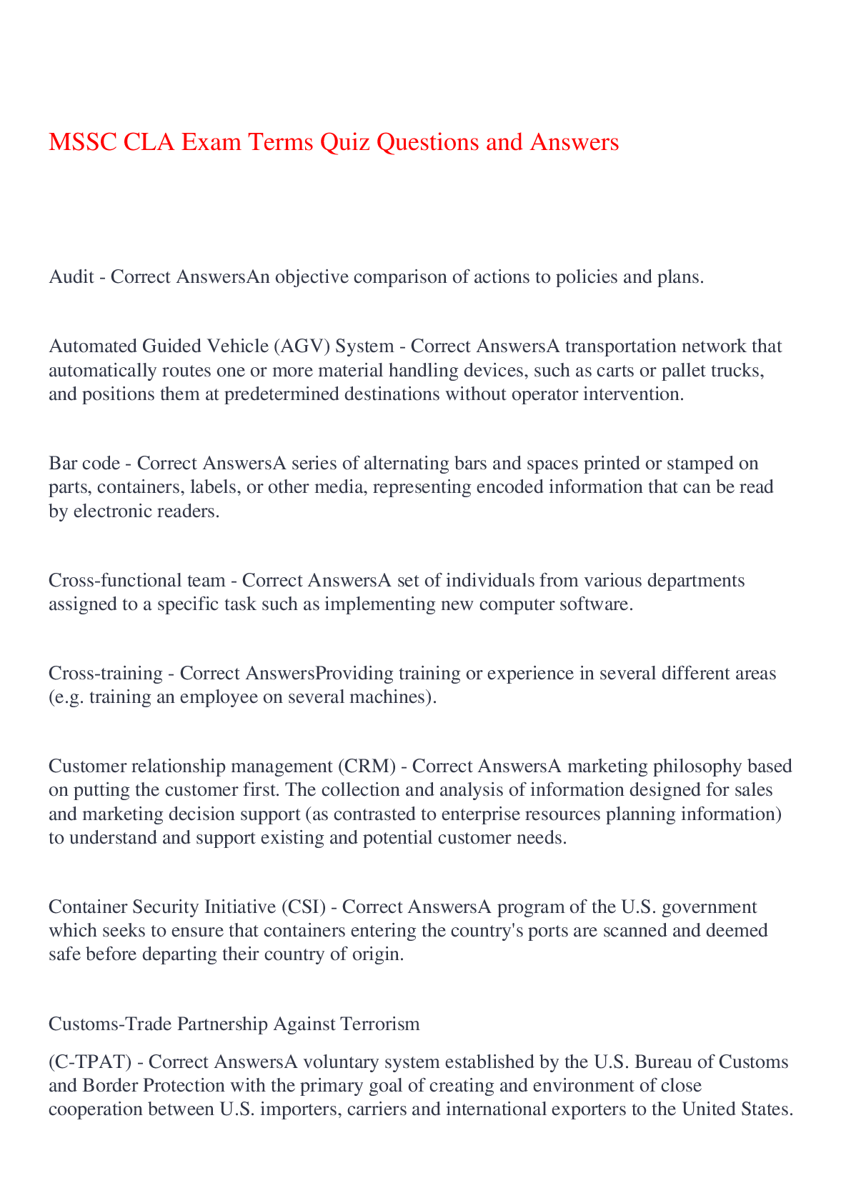 Logistics > EXAM > Certified Logistics Technician (CLT) Exam Study Guide: Key Concepts, Questions & Answers for Success (All)