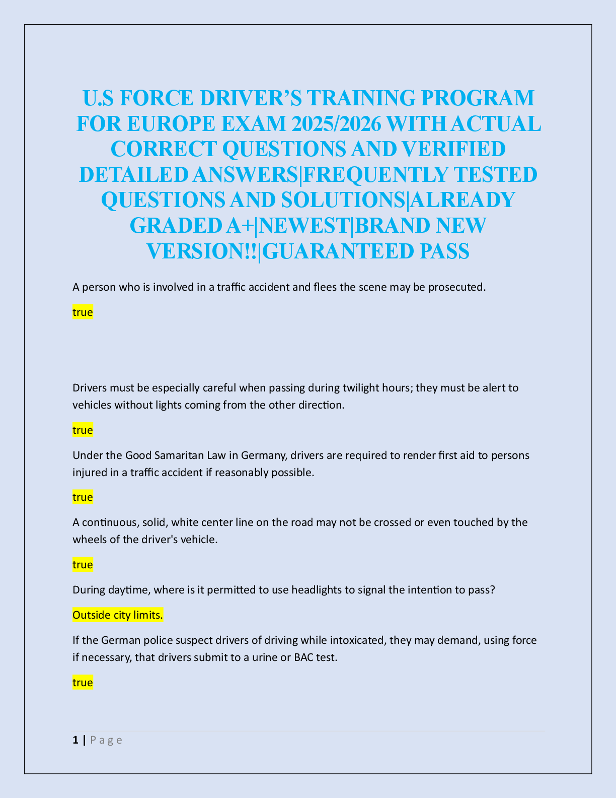 Logistics > EXAM > U.S FORCE DRIVER’S TRAINING PROGRAM FOR EUROPE EXAM (All)