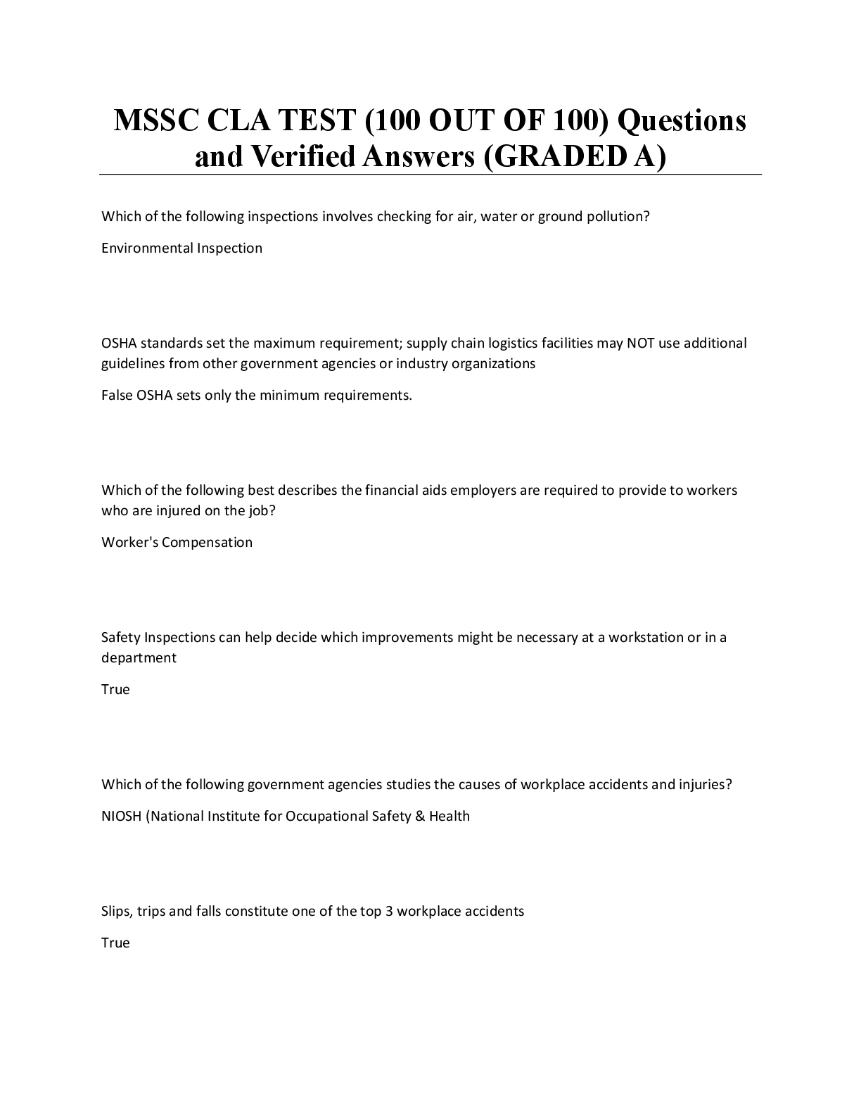 Logistics > QUESTIONS & ANSWERS > MSSC CLA Test (100 out of 100) Questions and Verified Answers (Graded A) (All)