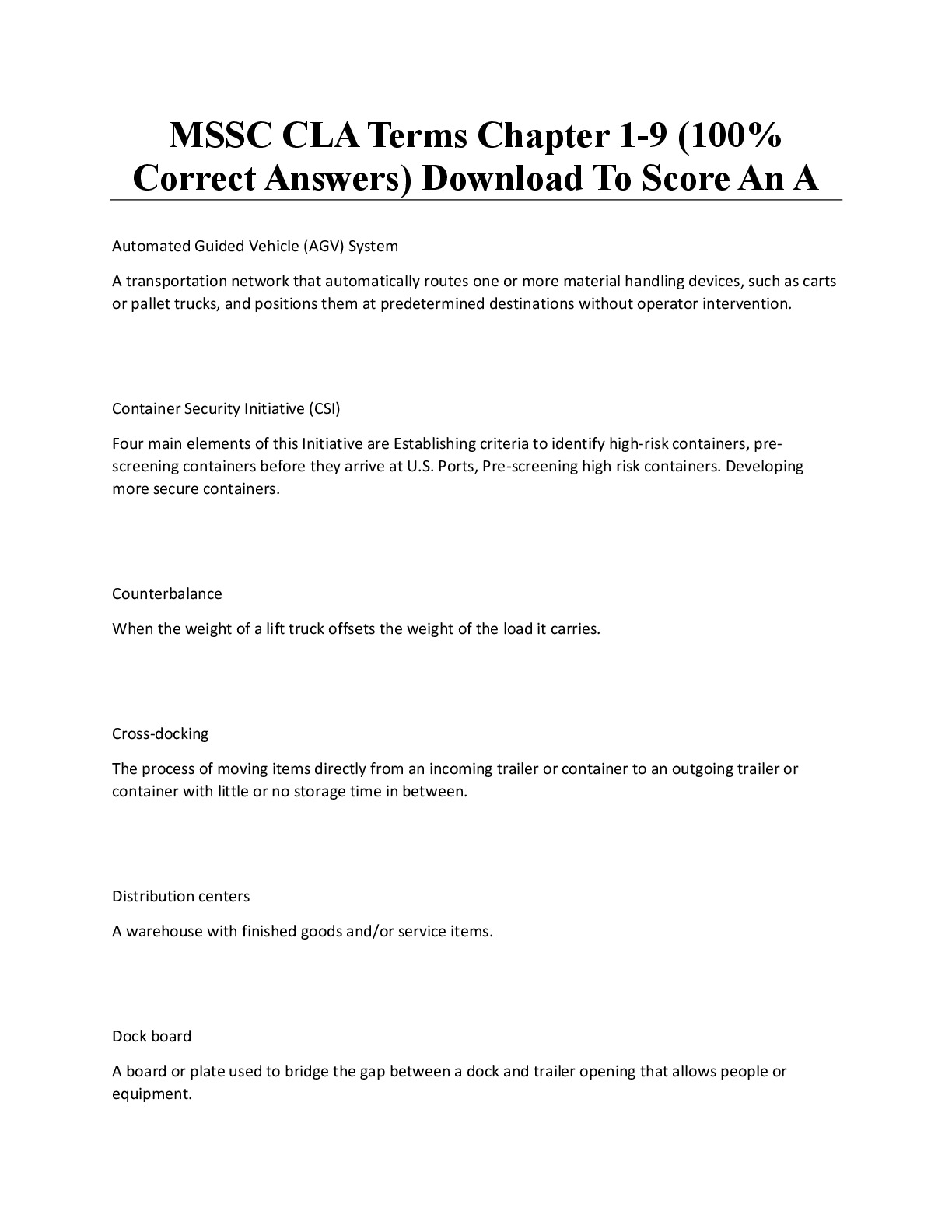 Logistics > QUESTIONS and ANSWERS > MSSC CLA Terms (Chapters 1–9) | 100% Correct Answers | Score an A (All)