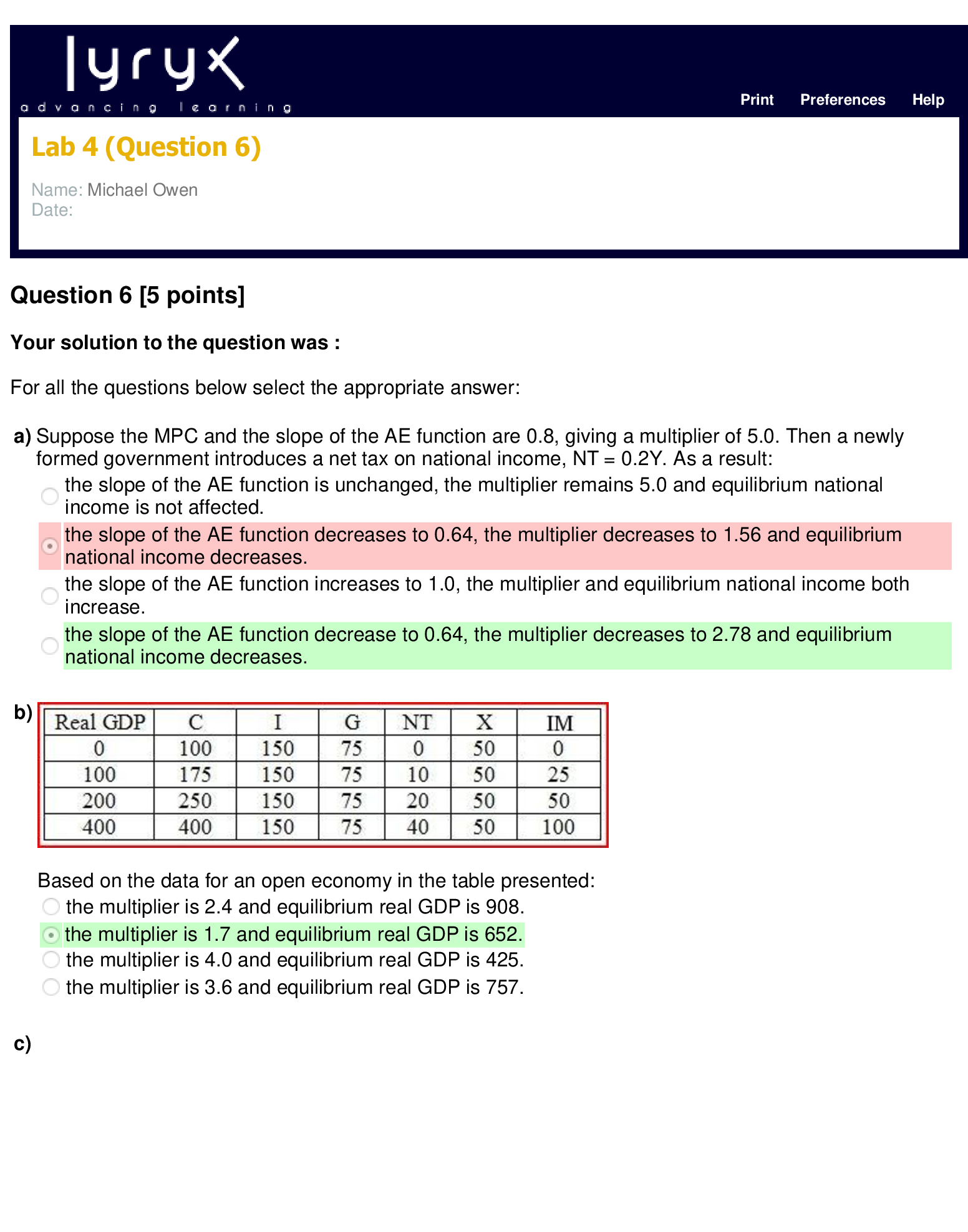 Economics > EXAM > Lab 4 (Question 6) Lyryx Learning ECON 203 (All)