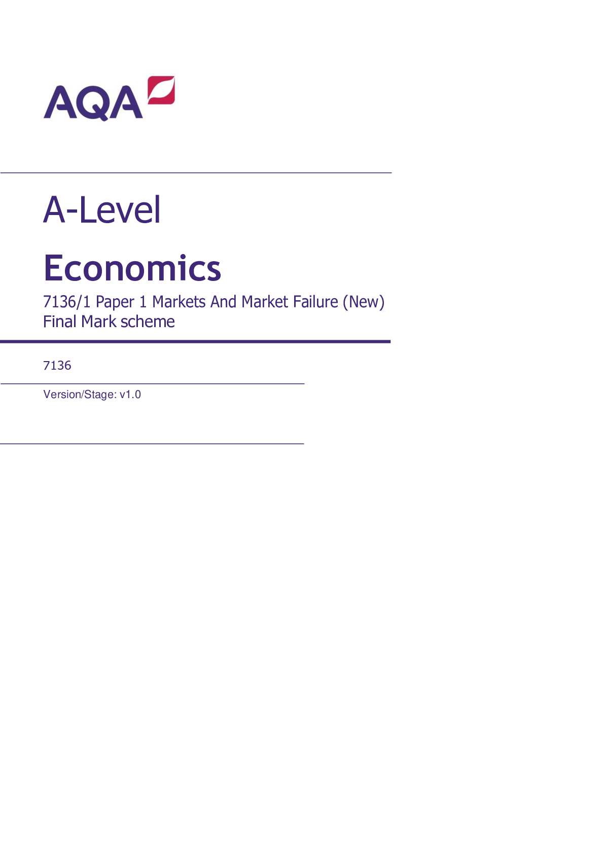 Economics > AQA > AQA A-level ECONOMICS 7136/1 PAPER 1 Markets and Market Failure Mark scheme June 2021 Version 1.0 Final Mark Scheme (All)