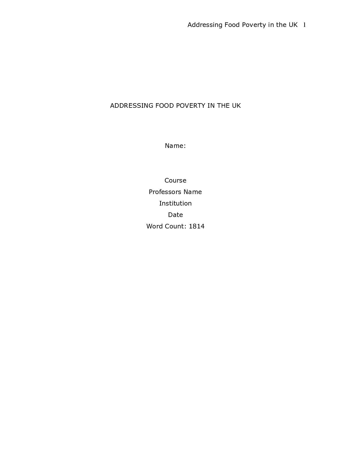 Economics > ESSAY > Addressing food poverty in United Kingdom (All)