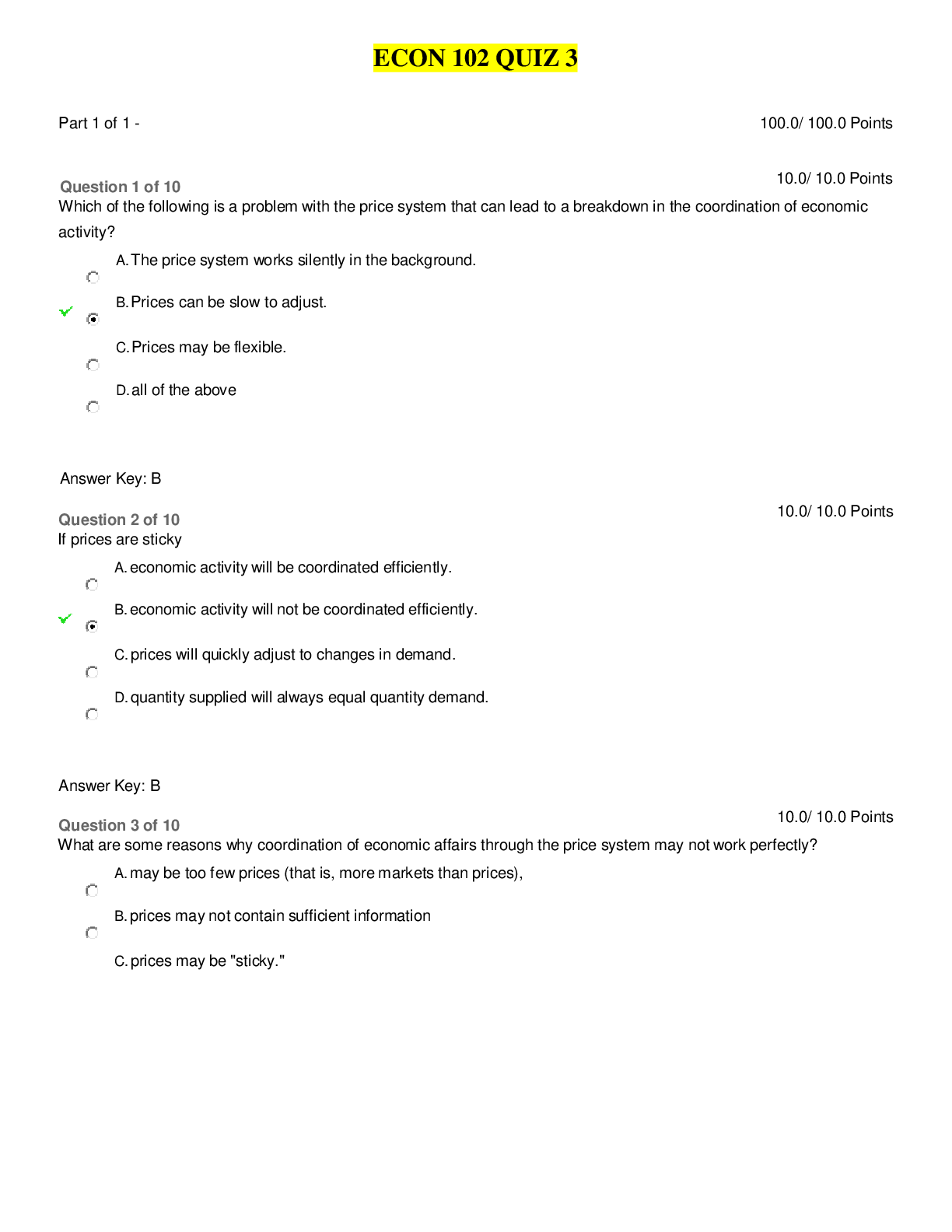 Economics > EXAM > ECON 102 QUIZ 3 - 100% Correct Questions and Answers (All)