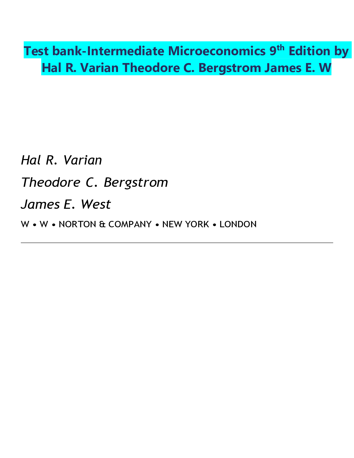 Economics > TEST BANKS > Test bank-Intermediate Microeconomics 9th Edition by Hal R. Varian Theodore C. Bergstrom James E. W.pdf (All)