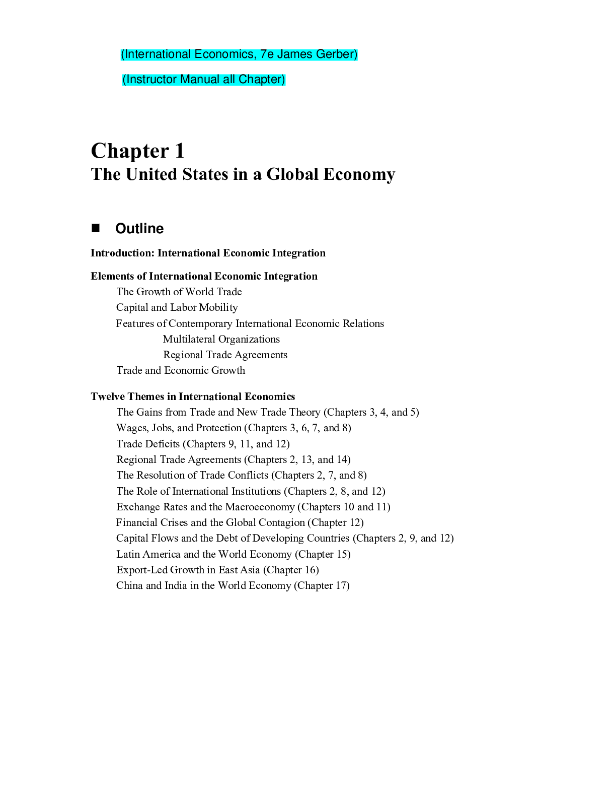 Economics > INSTRUCTOR MANUALS > International Economics, 7e James Gerber (Instructor Manual) (All)