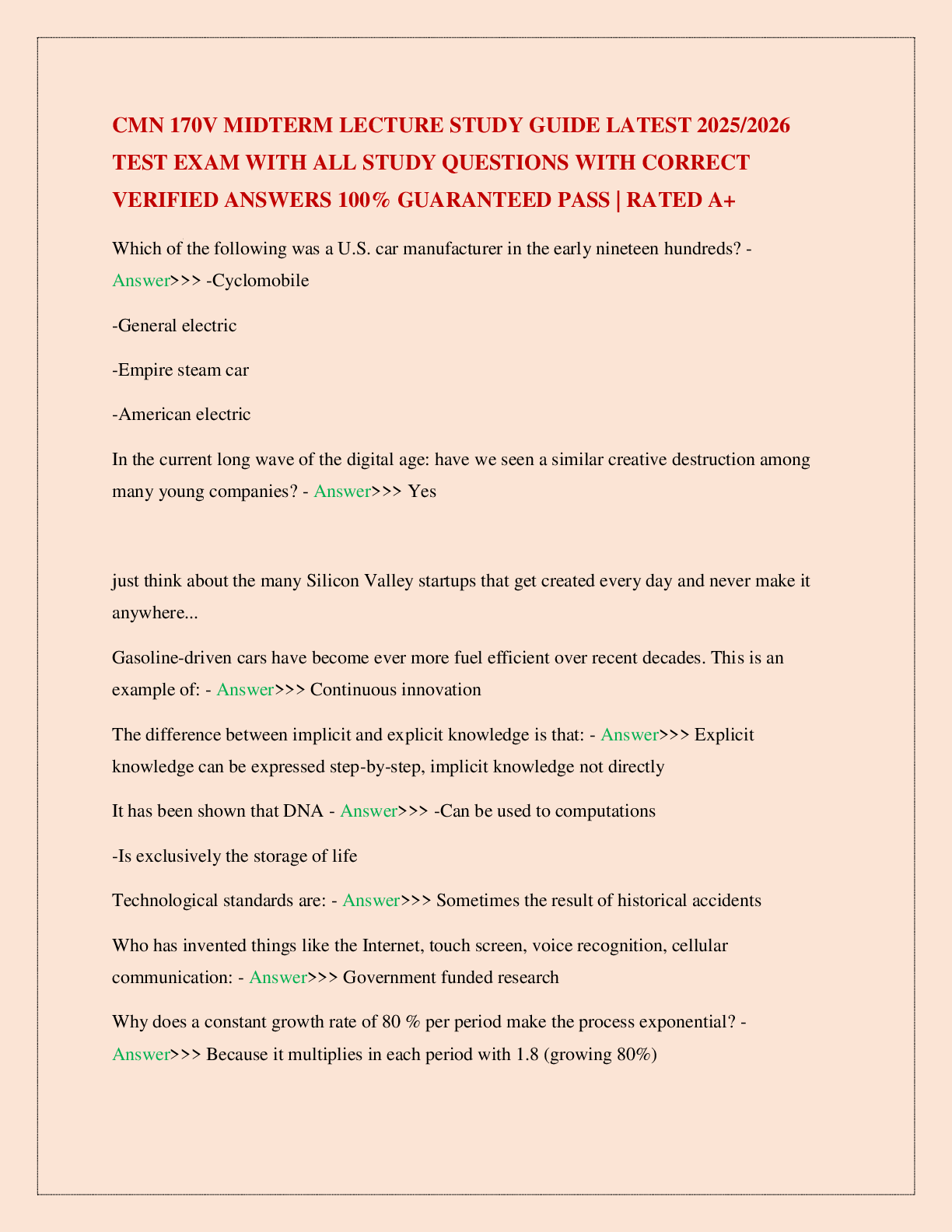 Economics > EXAM > CMN 170V MIDTERM LECTURE STUDY GUIDE LATEST 2025/2026 TEST EXAM WITH ALL STUDY QUESTIONS WITH CORRECT VERIFIED ANSWERS 100% GUARANTEED PASS | RATED A+ (All)