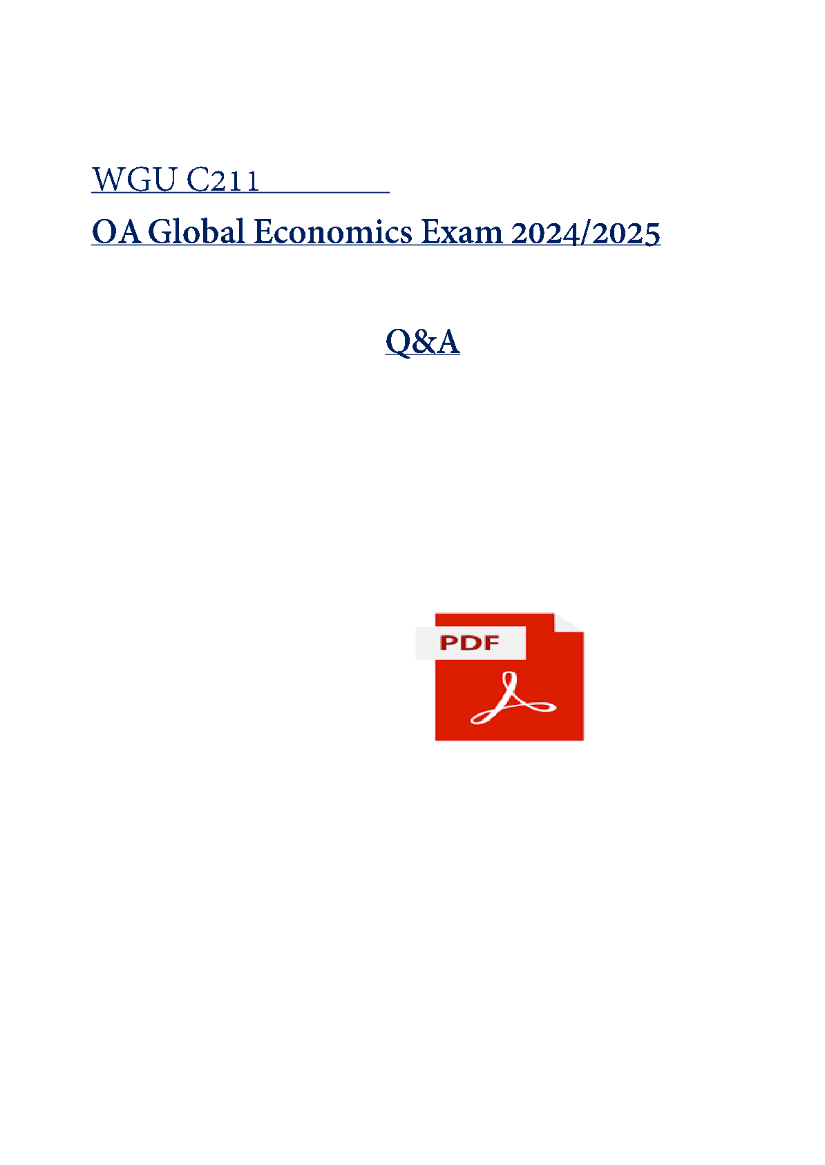 Economics > EXAM > WGU C211 OA Global Economics Exam (2024 / 2025) Questions and Verified Answers, 100% Guarantee Pass (All)