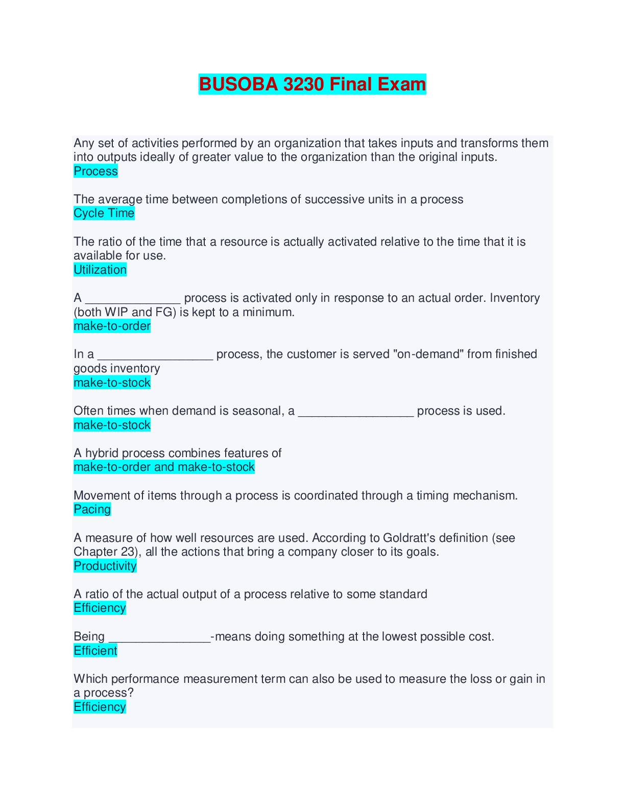 Operations Management > EXAM > BUSOBA 3230 Final Exam | Questions with Verified Answers (All)