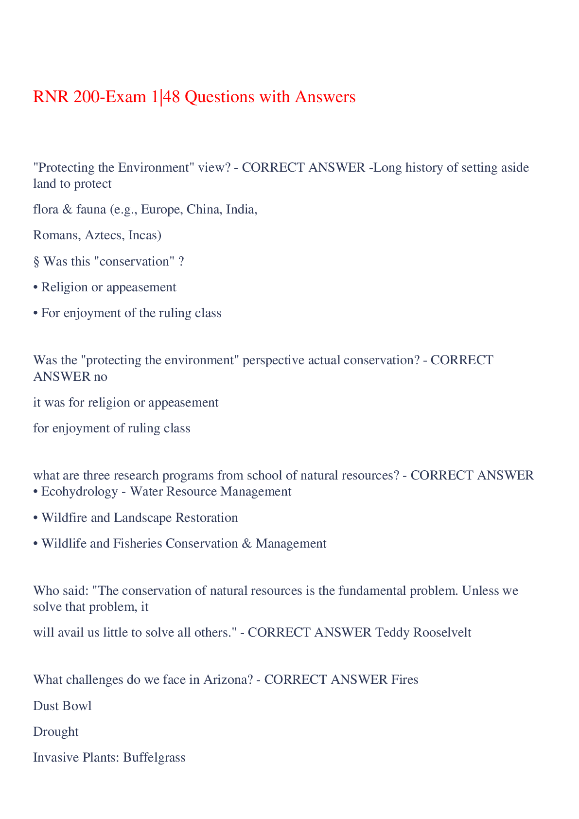 Geology > EXAM > NR 130 Exam 1 Study part 1 Questions with Answers ,100% CORRECT (All)