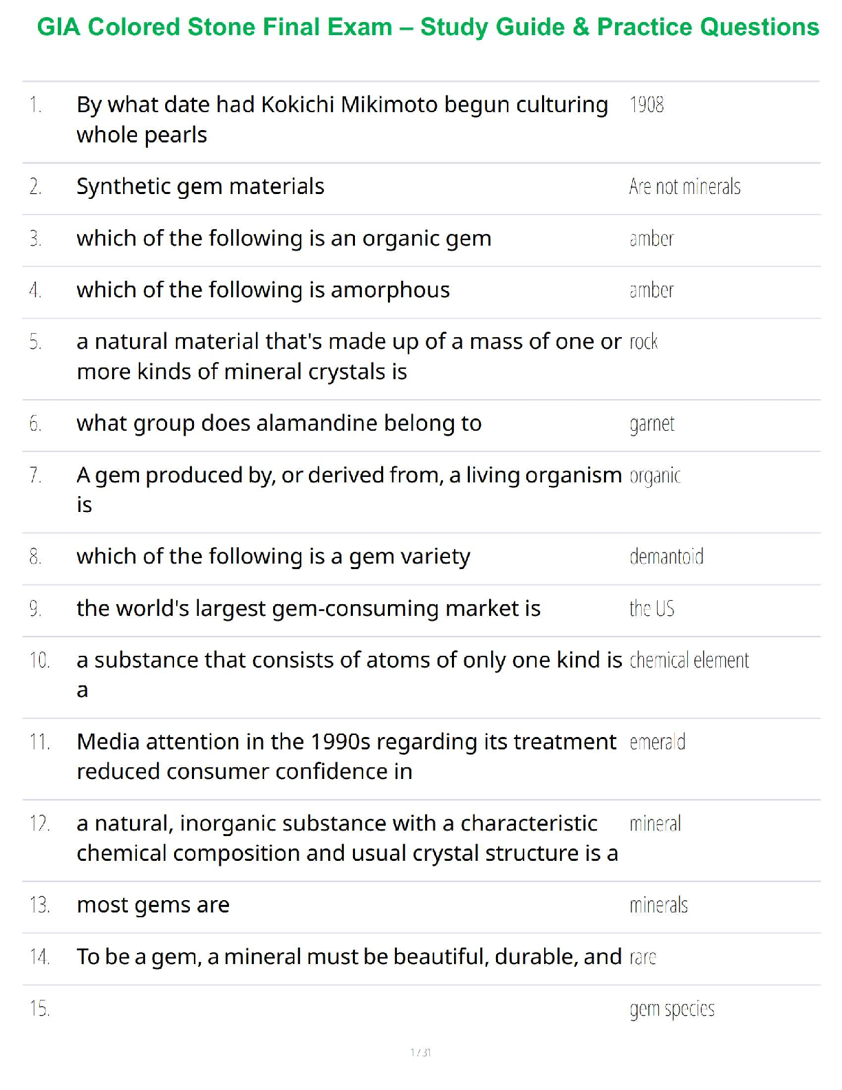 Geology > STUDY GUIDE > GIA Colored Stone Final Exam – Study Guide & Practice Questions (All)