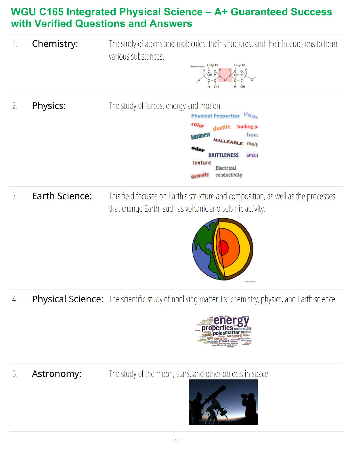 SCIENCE 101 > QUESTIONS & ANSWERS > WGU C165 Integrated Physical Sciences | 245 Questions with 100% Correct Answers | Verified | Latest Update (All)
