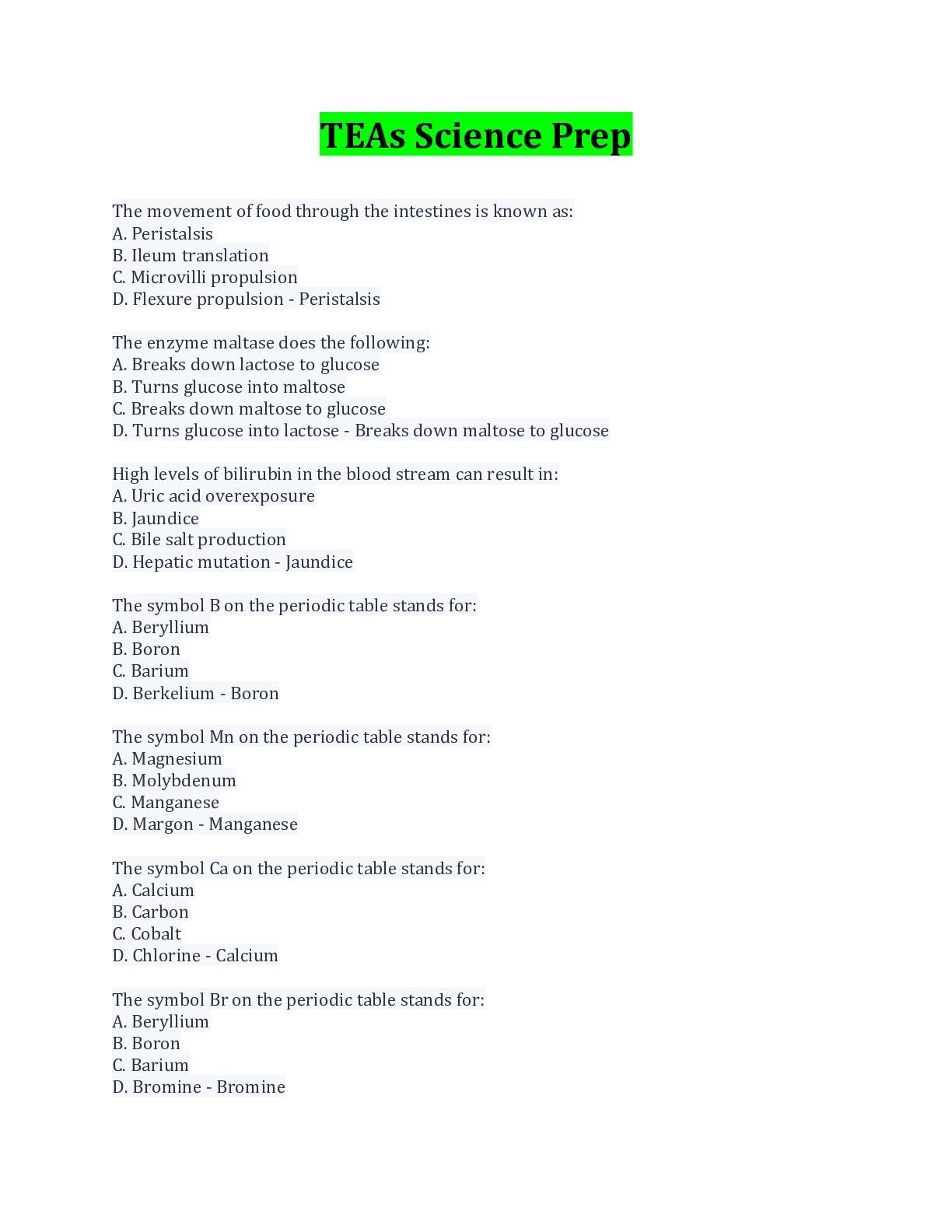 SCIENCE 101 > EXAM > TEAs Science Prep Questions And Answers Complete top Solution Rated A (All)