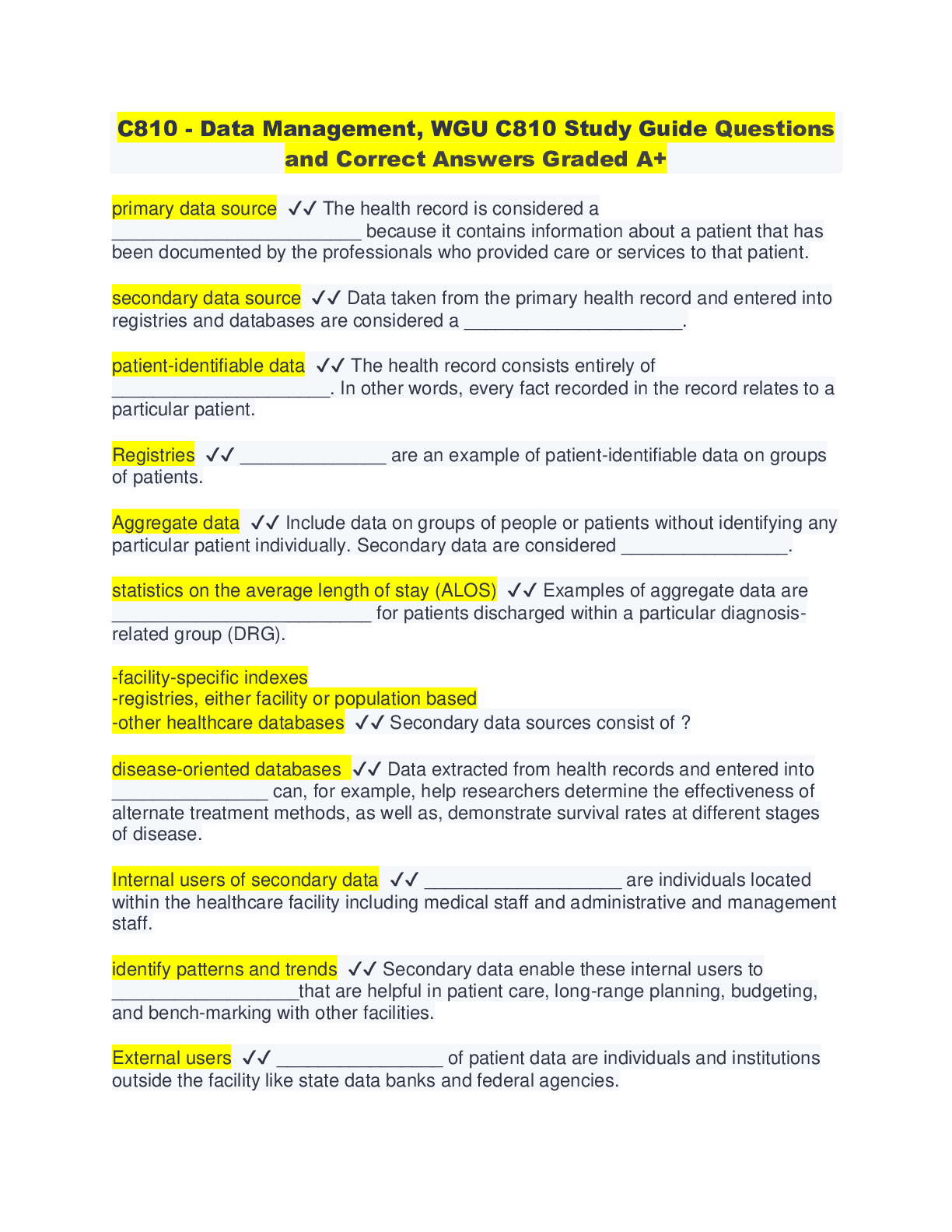 Database Management > EXAM > WGU C207 OA Questions and Answers with Complete Solutions (All)