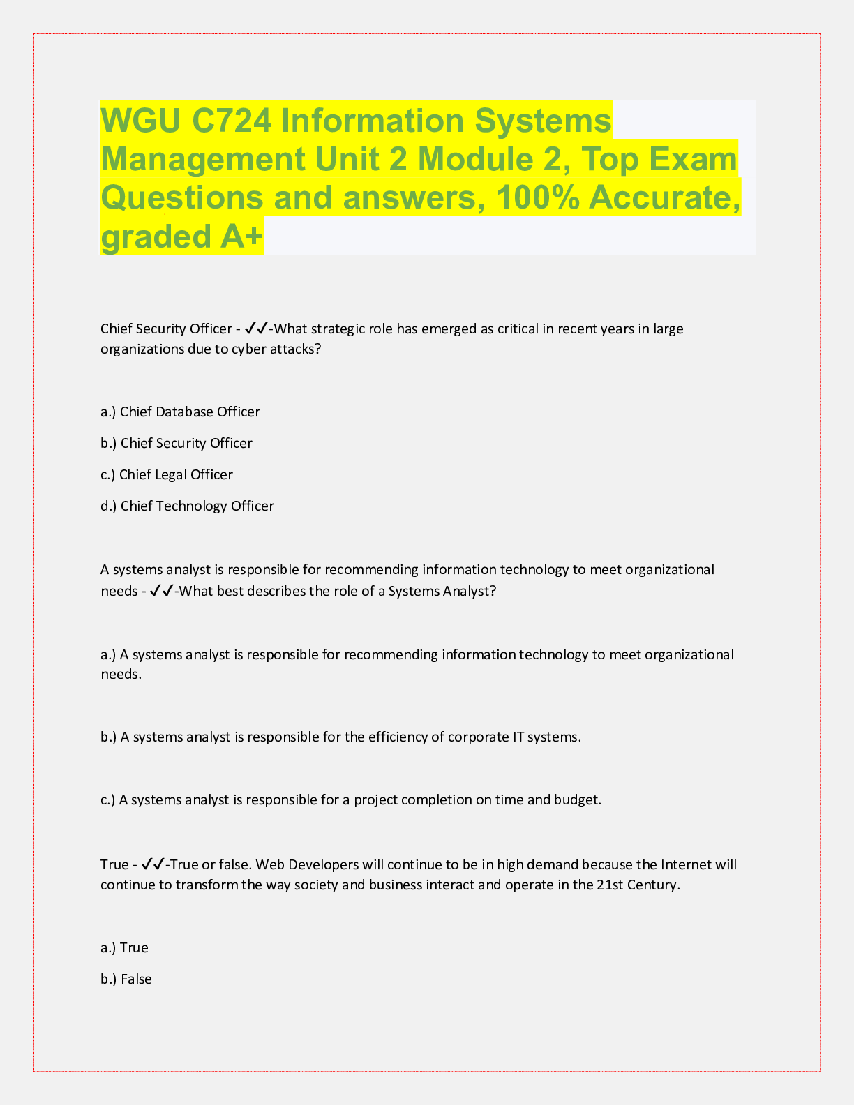 Database Management > QUESTIONS & ANSWERS > WGU Data Management - Applications - C170 OA GSA1 (All)