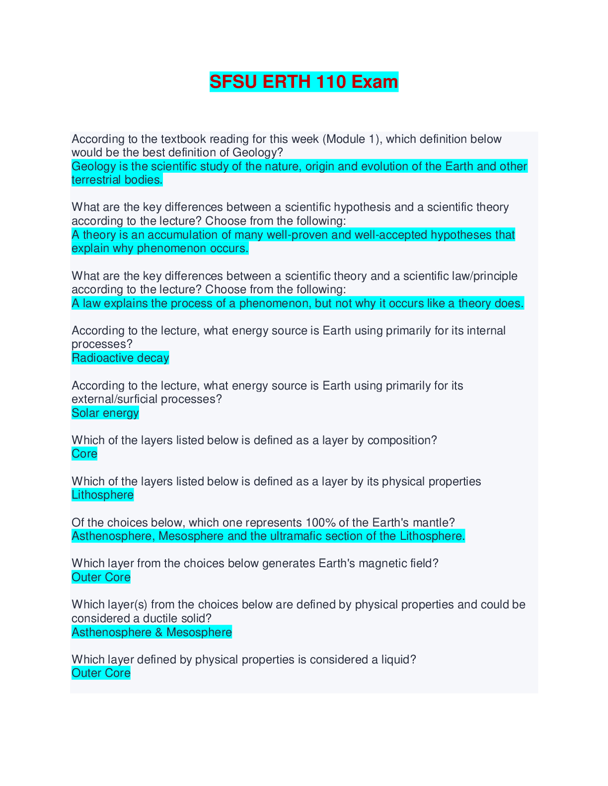 Earth Science > EXAM > SFSU ERTH 110 Exam | Questions and Answers (All)