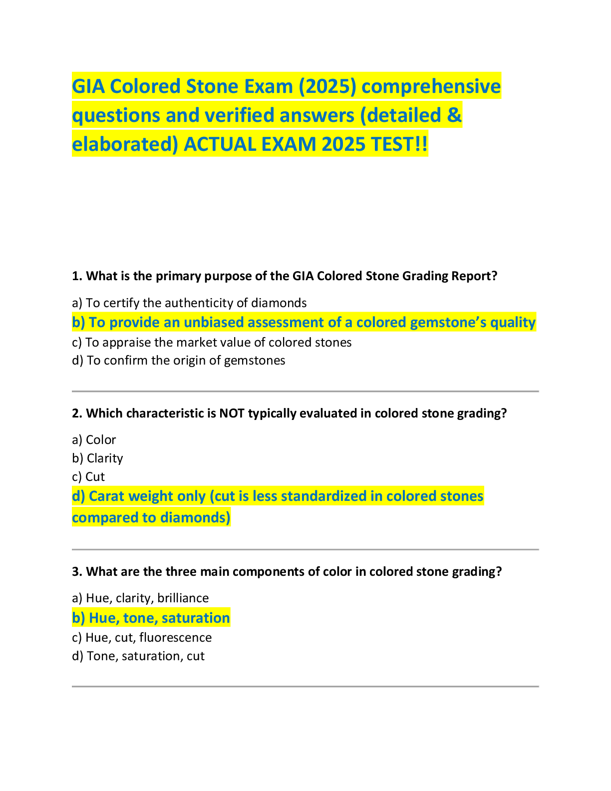 Earth Science > EXAMs > GIA Colored Stone Exam (2025) comprehensive questions and verified answers (detailed & elaborated) ACTUAL EXAM 2025 TEST!! (All)