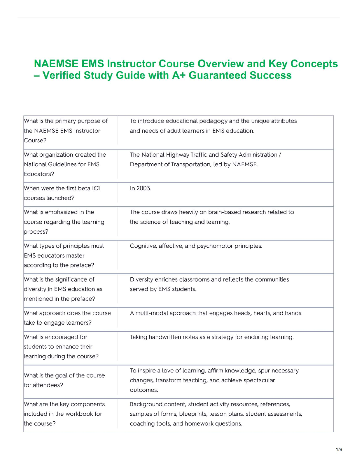 CERTIFIED FITNESS TRAINER > STUDY GUIDE > NAEMSE EMS Instructor Course Overview and Key Concepts – Verified Study Guide with A+ Guaranteed Success (All)
