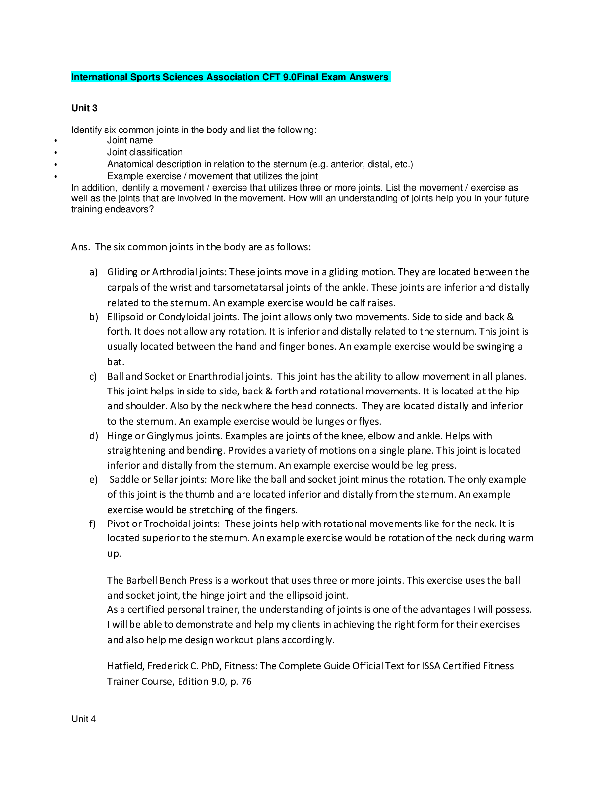 CERTIFIED FITNESS TRAINER > EXAM > International Sports Sciences Association CFT 9.0Final Exam Answers (All)