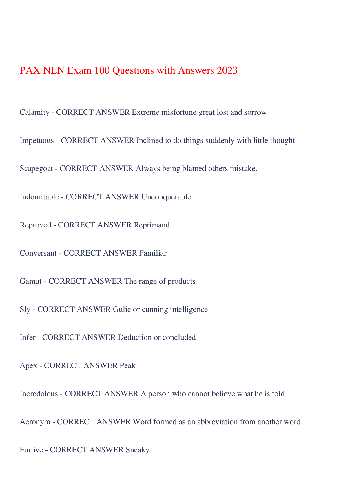 Education > EXAM > NLN Pax - Verbal English Exam 152 Questions with Answers 2023,100% CORRECT (All)