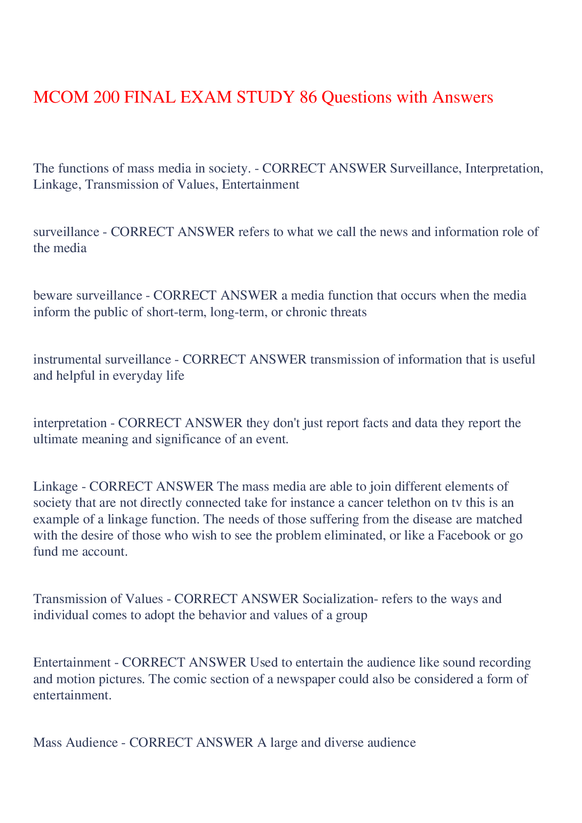 Education > EXAM > MCOM 200 FINAL EXAM STUDY 86 Questions with Answers,100% CORRECT (All)