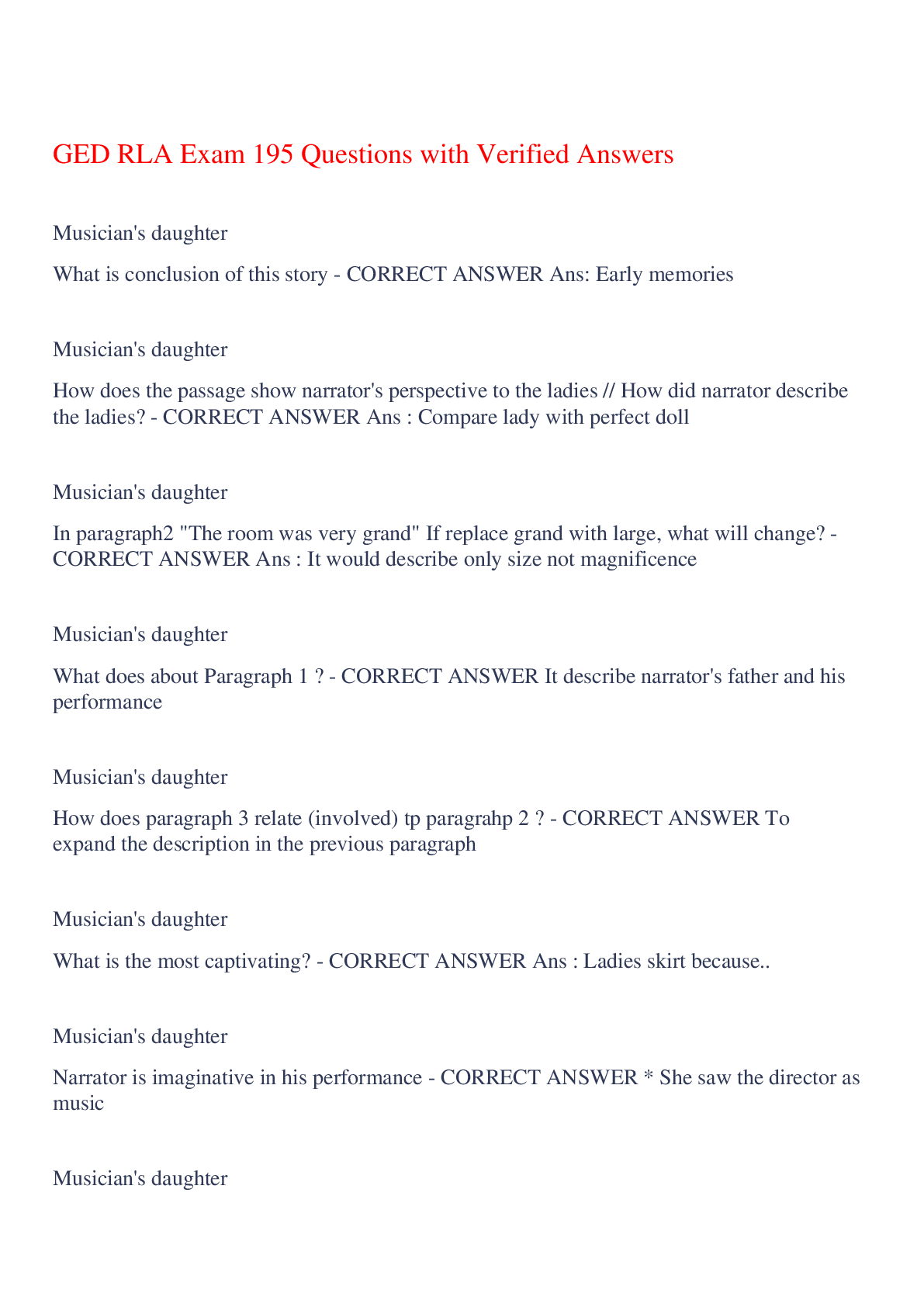 Education > EXAM > GED RLA Exam 195 Questions with Verified Answers,100% CORRECT (All)
