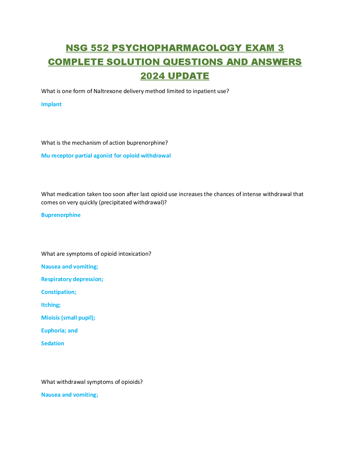 Education > EXAM > NLN Pharm Exam 83 Questions with Answers 2023,100% CORRECT (All)