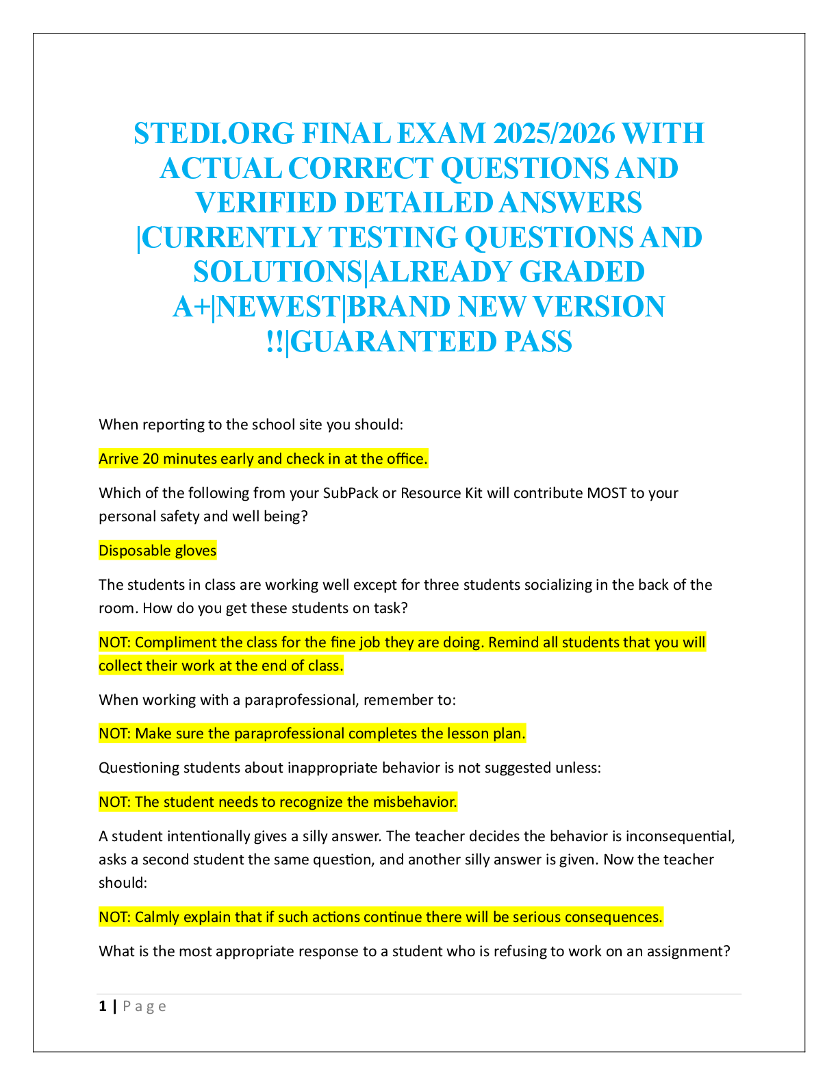 Education > EXAM > EDUC 304 Quiz: Dealing with Challenging or Violent Students | Score 50/50 | Liberty University (All)
