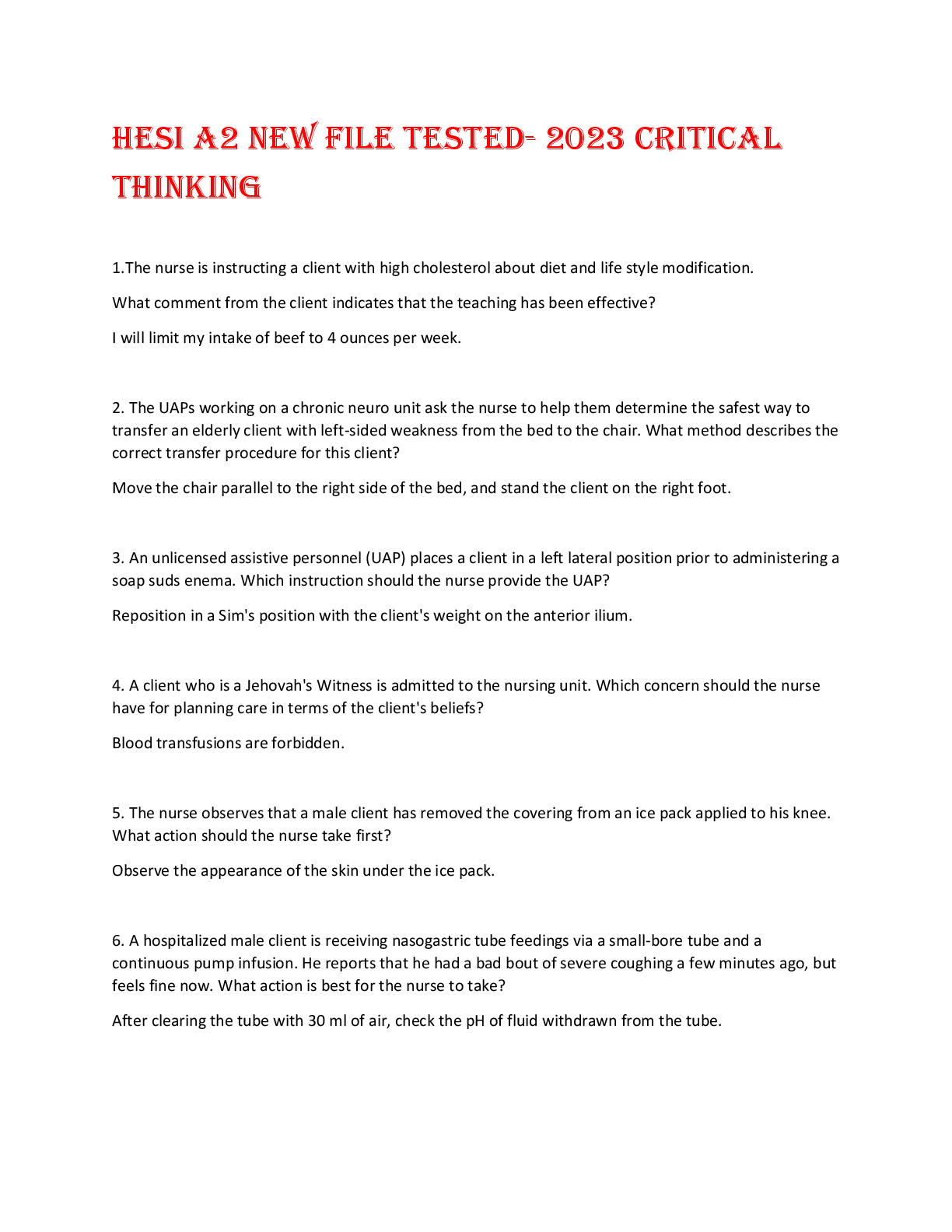 Education > EXAM > HESI A2 NEW FILE TESTED CRITICAL THINKING EXAM 2025 LATEST SOLUTION (All)