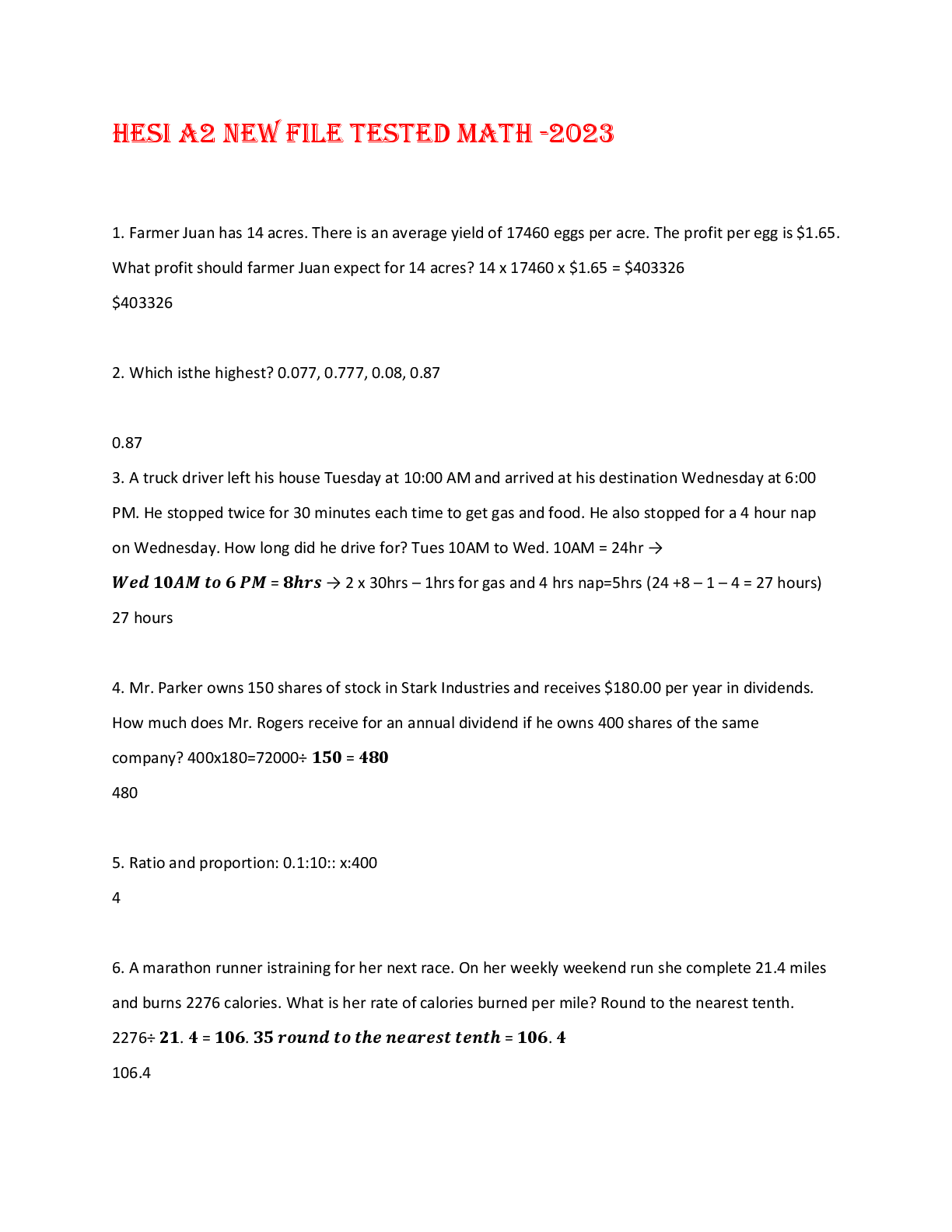 Education > EXAM > HESI A2 NEW FILE MATH EXAM TESTED AND VERIFIED 2025 (All)