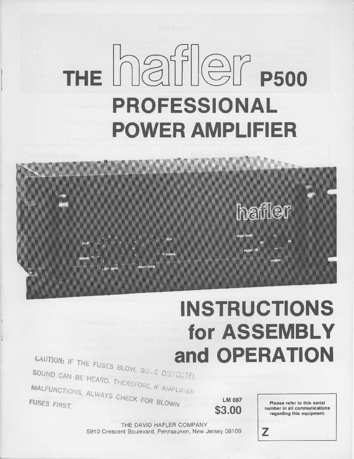 Education > Manual > the halfer p500 professional power amplifier INSTRUCTIONs Manual (All)