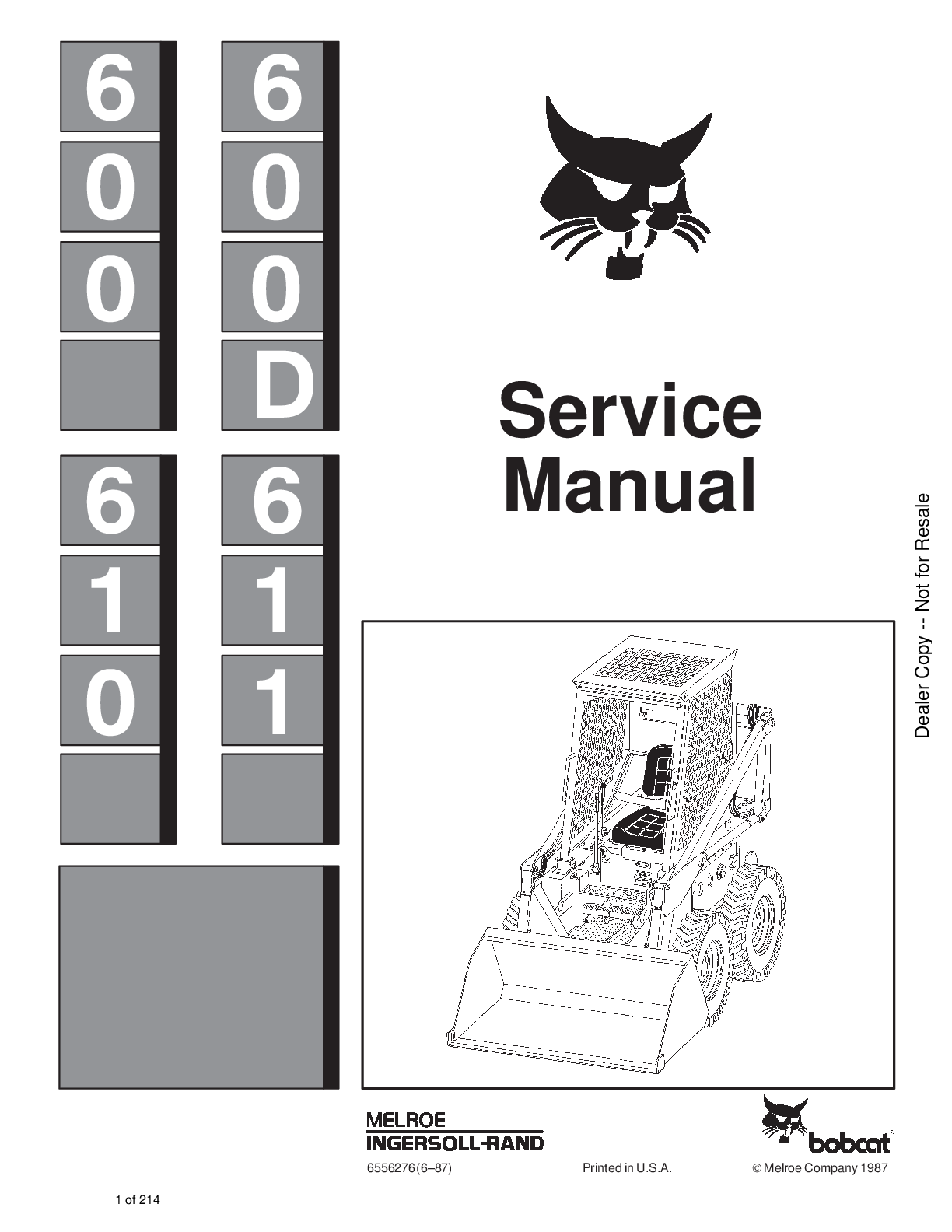 Education > Manual > BOBCAT 600D 610 611 SKID STEER LOADER SERVICE SHOP REPAIR MANUAL (All)
