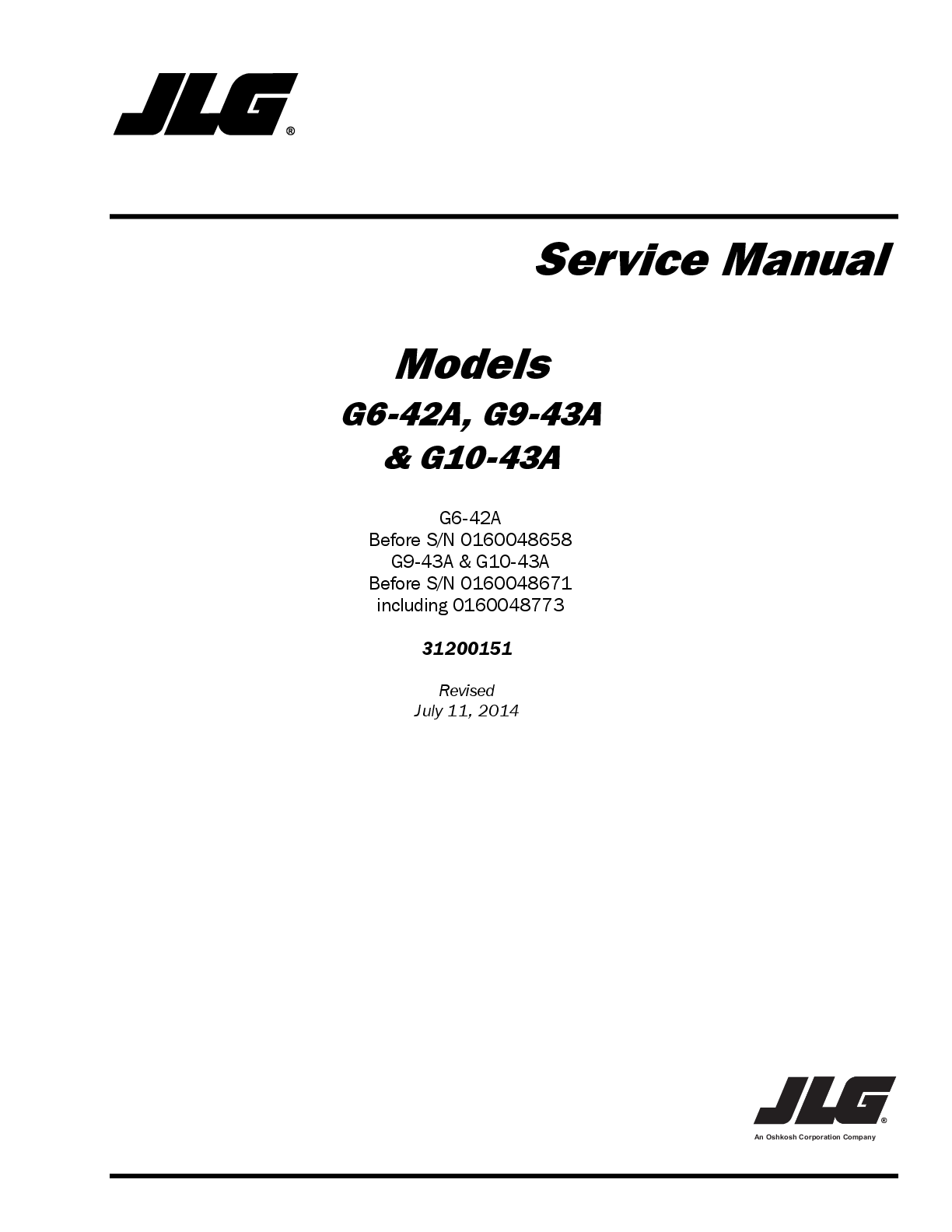 Education > Manual > JLG G6-42A G9-43A G10-43 Telehandler Service Repair Manual (All)
