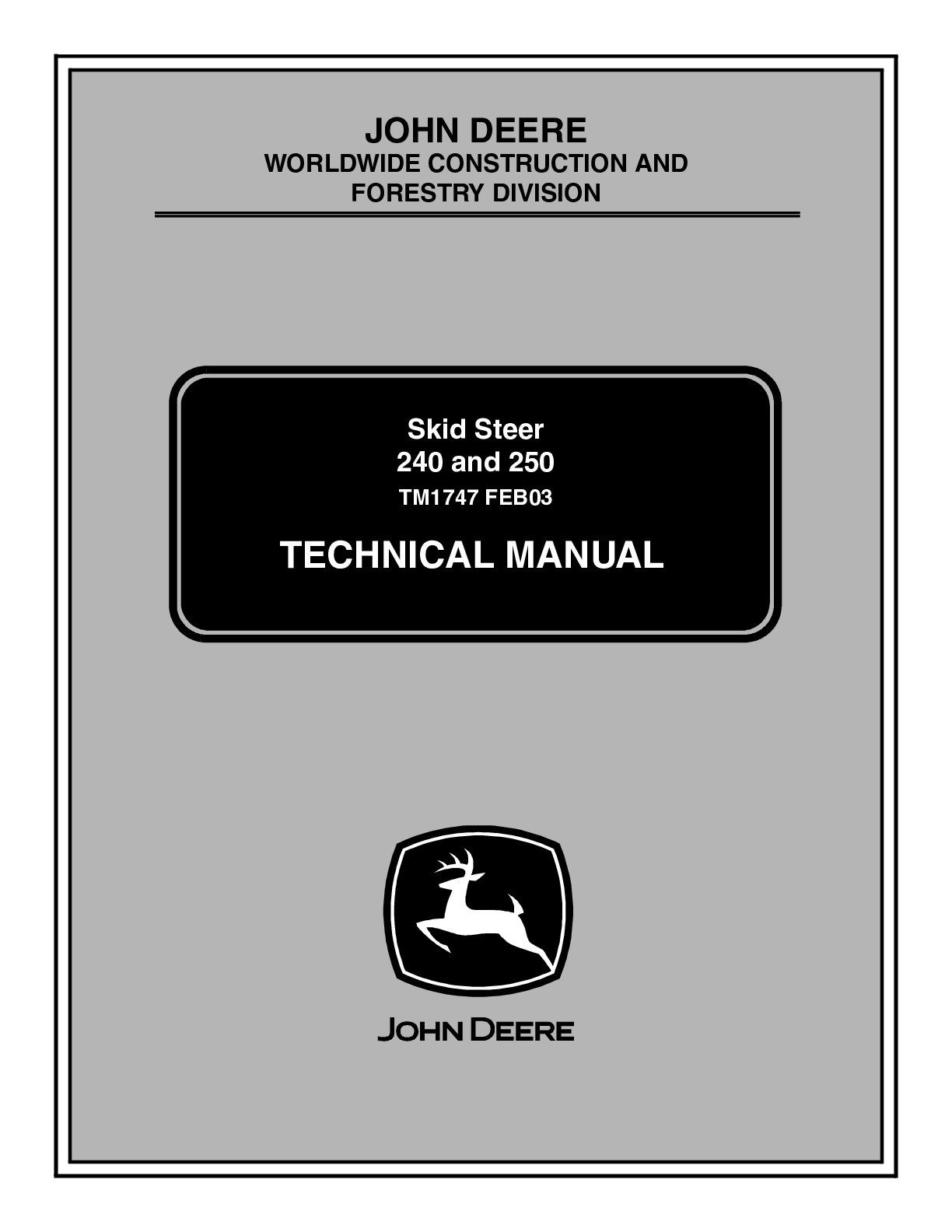 Education > Manual > John Deere 240 and 250 Skid Steer Repair Technical Service Manual (All)