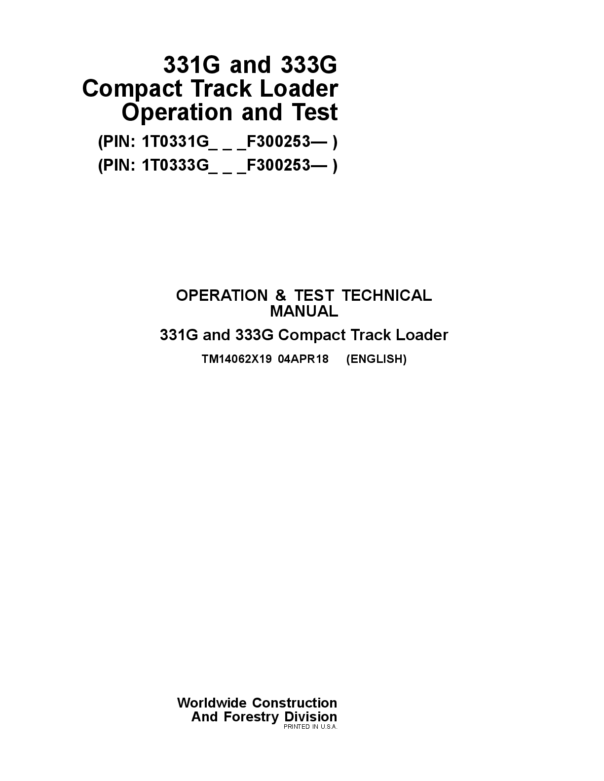 Education > Manual > JOHN DEERE 331G 333G SKID STEER LOADER OPERATORS MANUAL (All)