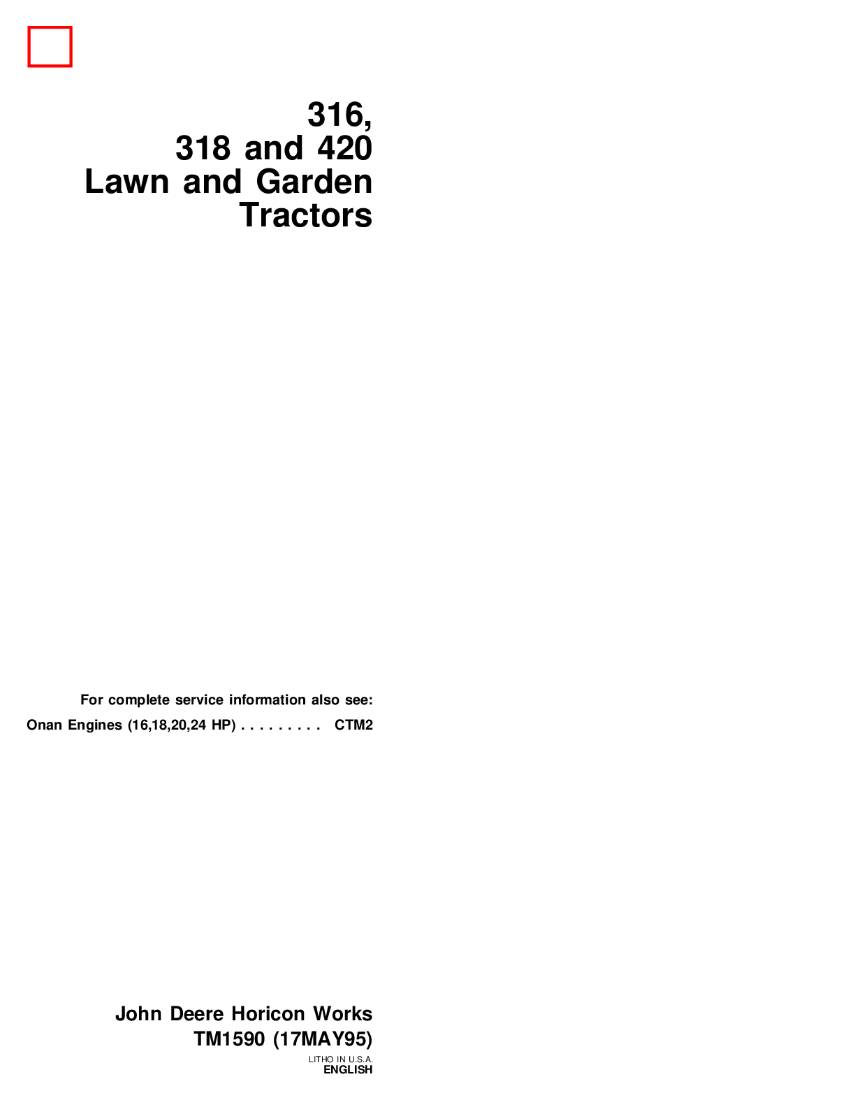 Education > Manual > TM-1590 & CTM 2 John Deere TECH Manual 316, 318 & 420 Lawn & Garden (All)