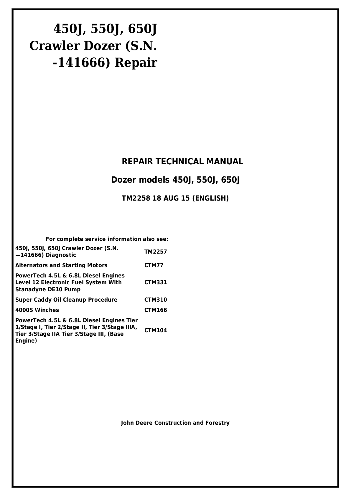 Education > Manual > JOHN DEERE 450J 550J 650J CRAWLER DOZER SERVICE REPAIR TEST ENGINE MANUAL (All)