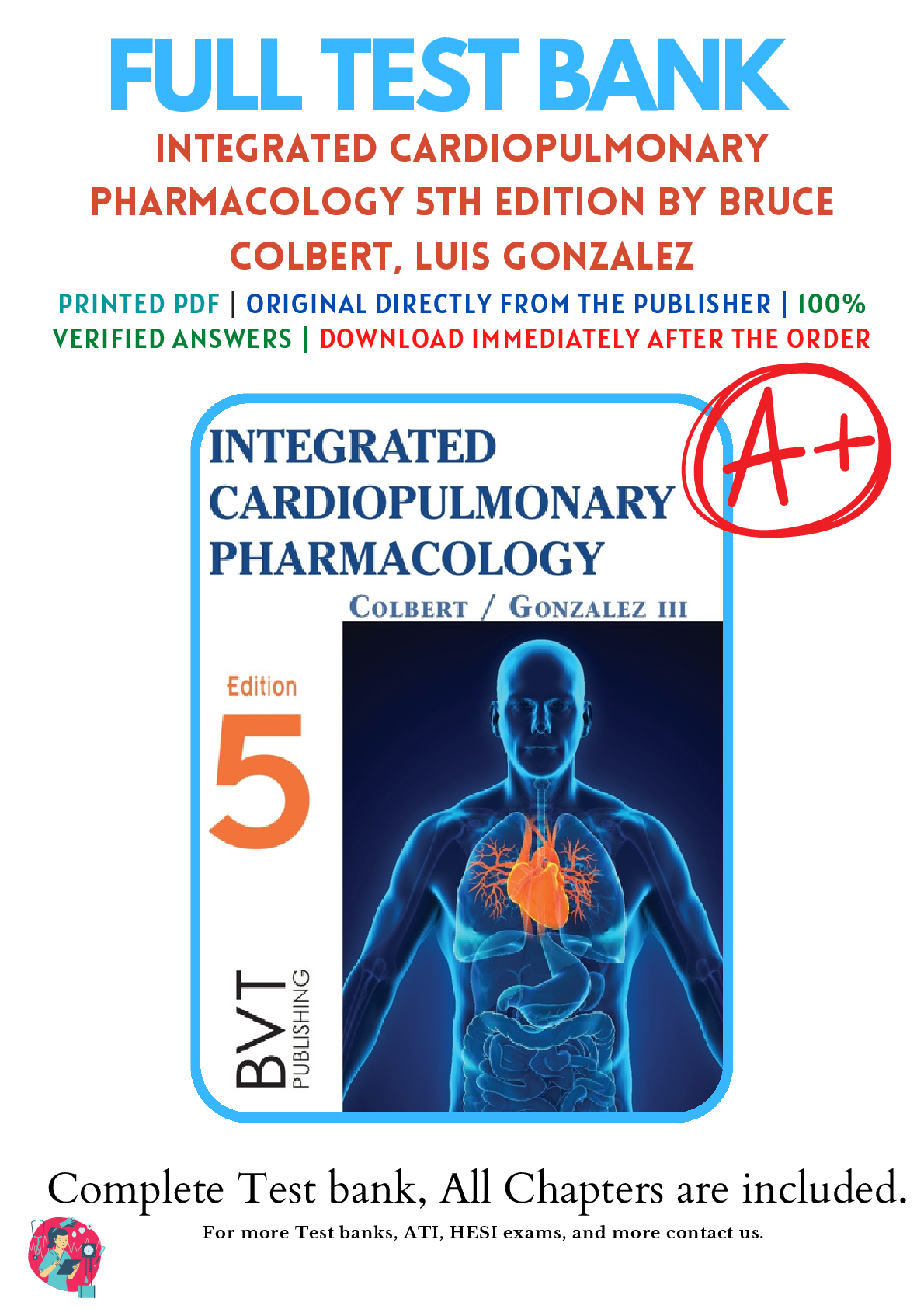 Education > Manual > Test Bank Integrated Cardiopulmonary Pharmacology 5th Edition Colbert (All)