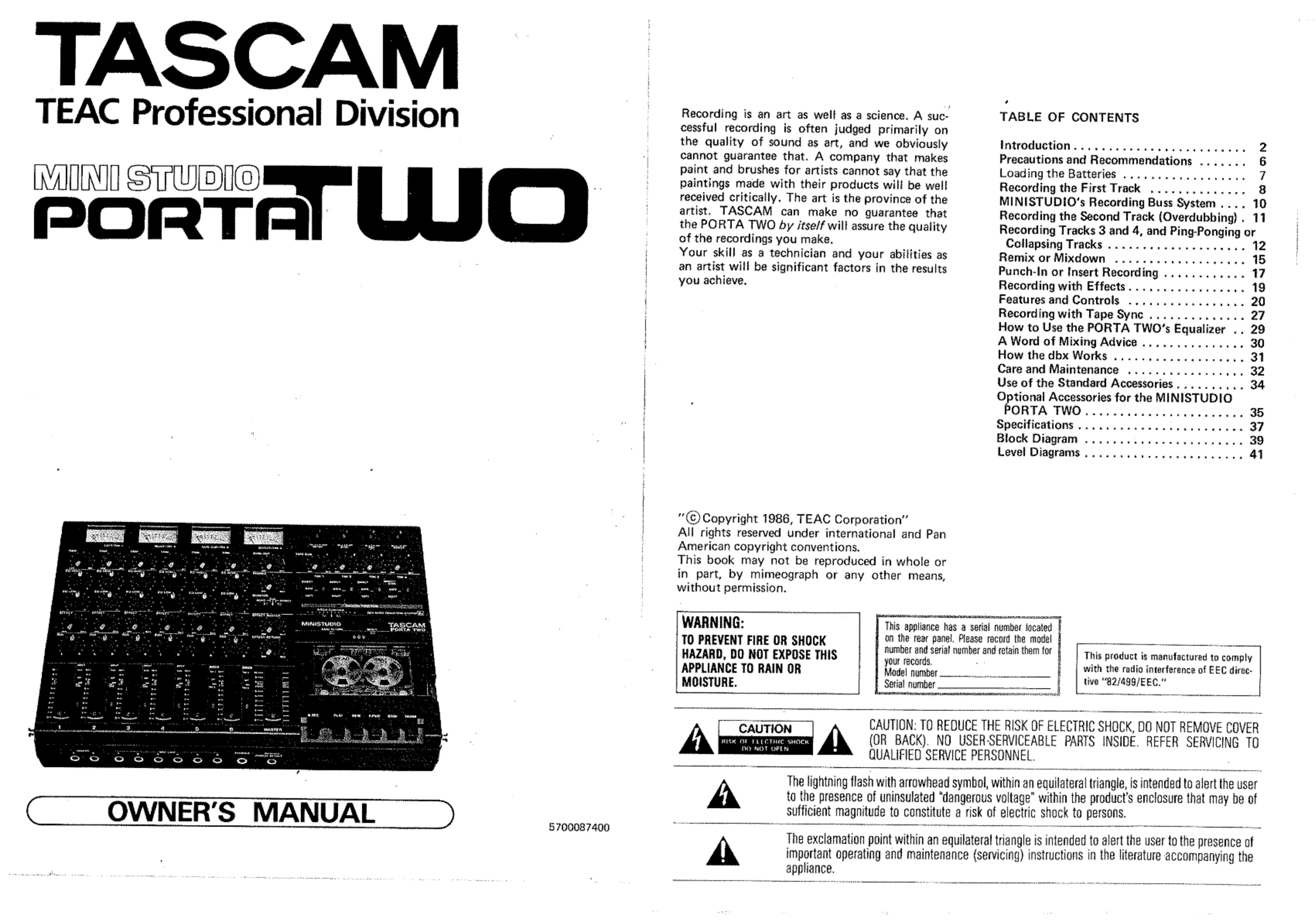 Education > Manual > Tascam Porta Two Mini Studio owner Manual (All)