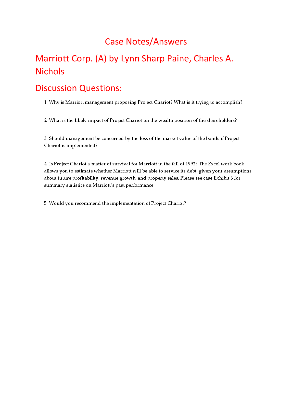 Education > HARVARD CASE SOLUTIONS > Case Notes Answers for Marriott Corp. (A) by Lynn Sharp Paine, Charles A. Nichols (All)