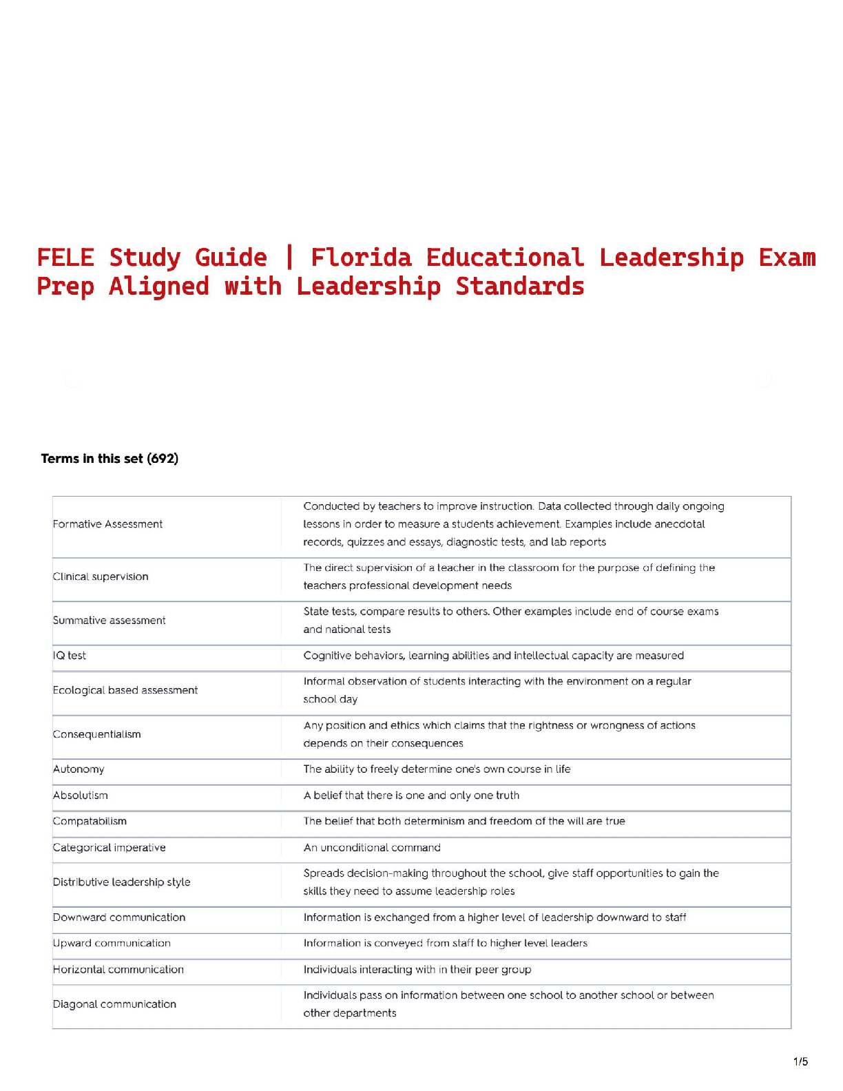 Education > STUDY GUIDE > FELE Study Guide | Florida Educational Leadership Exam Prep Aligned with Leadership Standards (All)