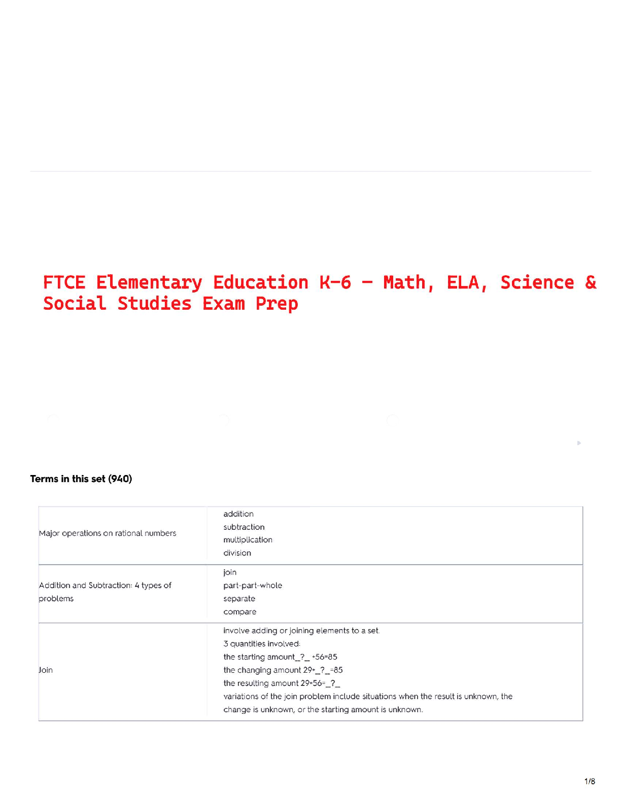 Education > STUDY GUIDE > FTCE Elementary Education K-6 – Math, ELA, Science & Social Studies Exam Prep (All)
